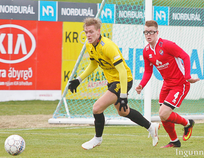Bjarni Aðalsteinsson skoraði sigurmark Magna undir lokin gegn Víkingi Ólafsvík en þar var Ívar Örn Árnason öflugur í vörninni eftir að hafa komið á láni frá KA í síðustu viku.