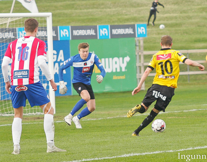 Tryggvi, sem er 22 ára, skoraði tvennu þegar ÍA vann 3-1 sigur gegn KA á Akranesi. Tryggvi var að spila sinn fyrsta leik í efstu deild síðan 2017 en undanfarin ár hefur hann verið að spila með Halmstad í Svíþjóð.