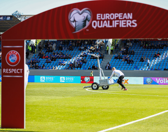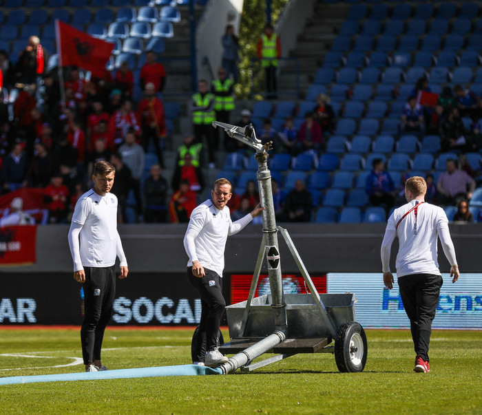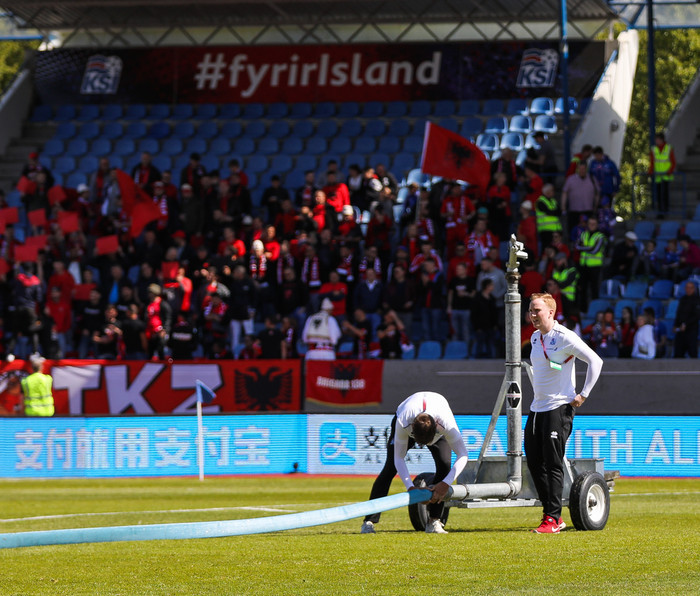 Bjarki Már Ólafsson, aðstoðarmaður Heimis Hallgrímssonar hjá Al Arabi í Katar, var vallarstarfsmaður á leik Íslands og Albaníu í undankeppni EM í dag.
