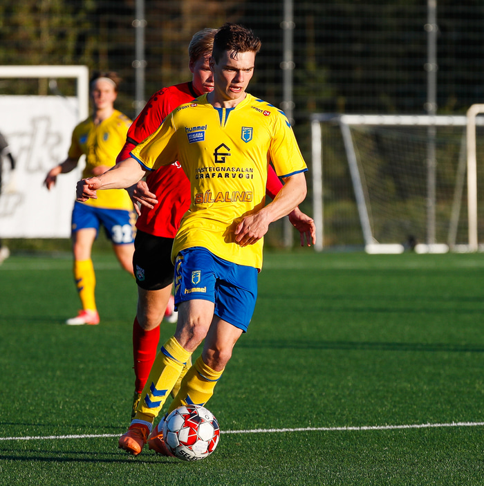 Sólon Breki Leifsson skoraði bæði mörk Leiknis í 2-2 jafntefli gegn Gróttu en Leiknir komst í 2-0 í fyrri hálfleik.