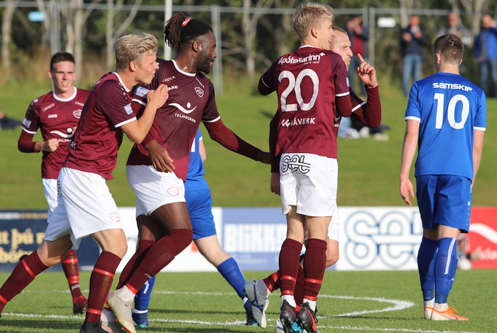 Hann er leikmaður 16. umferðarinnar í 2. deild eftir góða frammistöðu á vinstri kantinum í 4-0 sigri á Dalvík/Reyni. Hann bæði skoraði og lagði upp í leiknum.