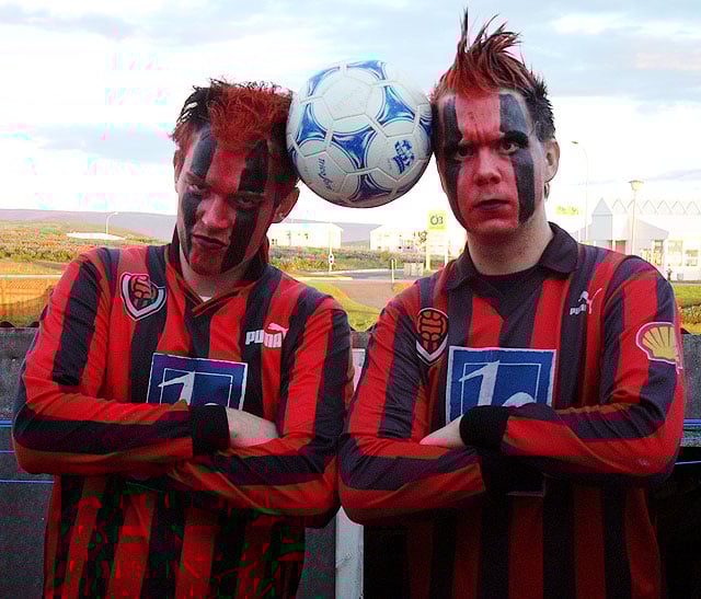 Tveir stuðningsmanna Víkinga, Guðjón Guðmundsson og Heimir Gunnlaugsson sem hugsanlega munu taka fram skóna til að leika með Berserkjum.