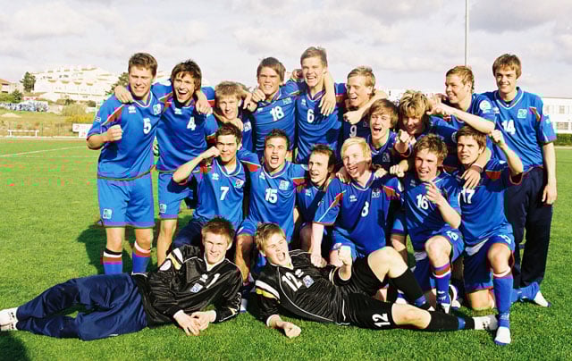 34 Arnar Darri Pétursson í marki Íslendinga ver.