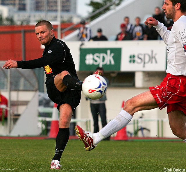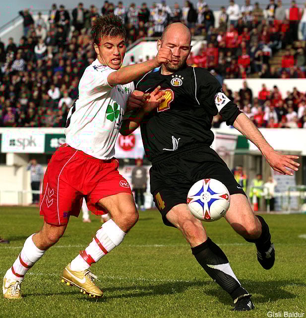 Nokkrum mínútum síðar fengu HKingar fína skyndisókn. Finnur Ólafsson sendi þá boltann inn fyrir á Jón Þorgrím en Gunnlaugur Jónsson elti hann uppi og náði að renna sér fyrir skotið. Flott sókn heimamanna og jafnframt eina færi þeirra sem fór forgörðum.