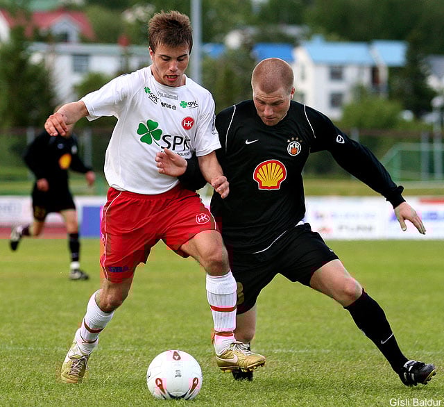 HK (4-5-1): Gunnleifur Gunnleifsson, Stefán Eggertsson, Ásgrímur Albertsson, Finnbogi Llorens, Davíð Magnússon, Hólmar Eyjólfsson, Finnur Ólafsson, Rúnar Sigmundsson (70. Þórður Birgisson), Jón Stefánsson (70. Calum Bett), Aaron Palomares, Eyþór Guðnason (65. Oliver Jaeger).