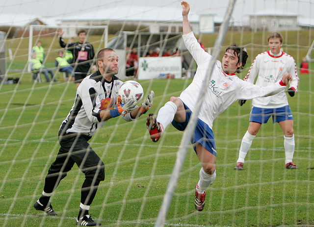 Ólafur Þór Gunnarsson hefur verið frábær í marki Þróttar undanfarin tvö ár en liðið tryggði sér í kvöld sæti í Landsbankadeildinni að nýju eftir 0-4 sigur á Reyni í Sandgerði. Ólafur íhugar að hætta í fótboltanum en viðurkenndi í samtali við Fótbolta.net eftir leik að það væri erfitt nú þegar liðið er komið í Landsbankadeildina.