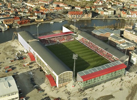 Lítið aðeins á þessa mynd og svarið því hvort eitthvað vit sé í því að vilja frekar Laugardalsvöllinn eins og hann er. Þetta er engin fantasía heldur var svona framkvæmd raunhæfur kostur.