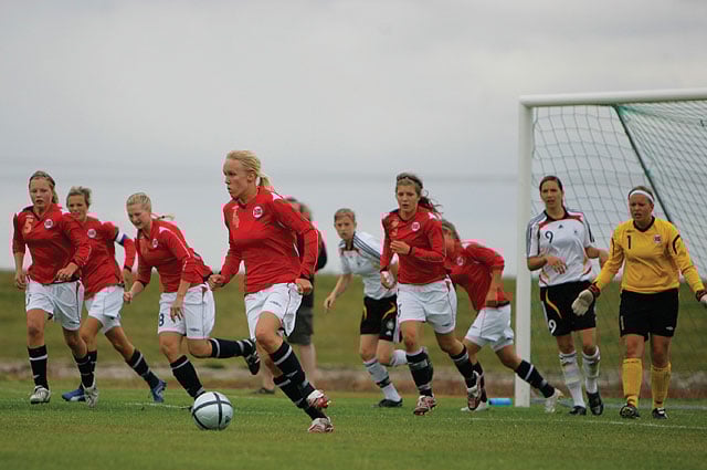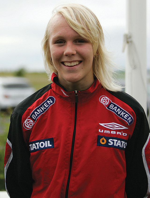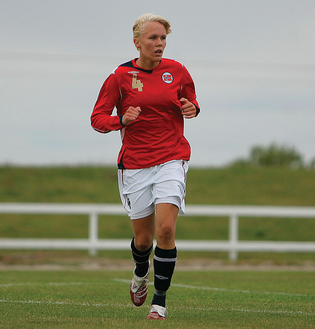 María var að leika sinn þriðja leik með U16 ára landsliði Noregs en þegar við spurðum hana hvort hún stefndi ekki á að komast í A-landsliðið í framtíðinni gat hún ekki gefið ákveðið svar enda er hún ekki viss hvort hún spili fótbolta áfram.