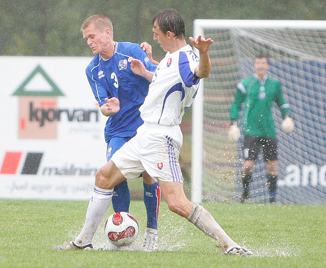 Forystan stóð þar til undir lok fyrri hálfleiks þegar Slóvakar jöfnuðu úr vítaspyrnu. Eftir þunga sókn þeirra áttu þeir skot að marki úr dauðafæri.