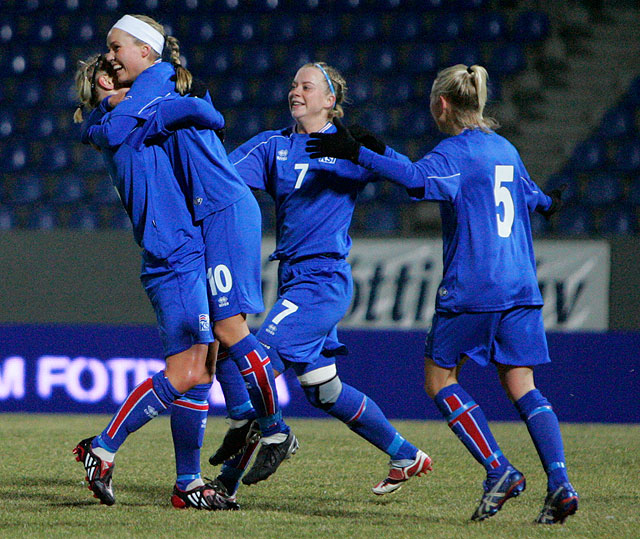 Íslenska liðið sótti mun meira í fyrri hálfleik og átti Sara Björk Gunnarsdótti fínt skallatækifæri eftir flotta sendingu frá Hólmfríði Magnúsdóttir en búið var að flagga rangstæðu.