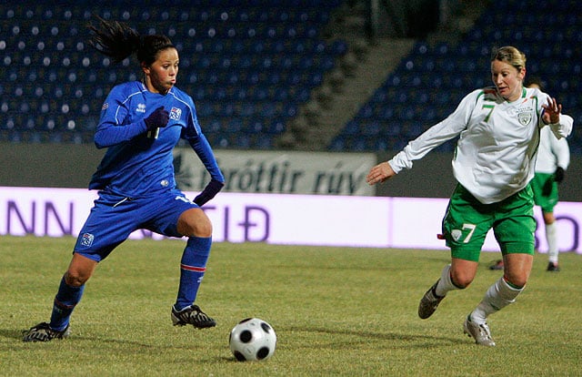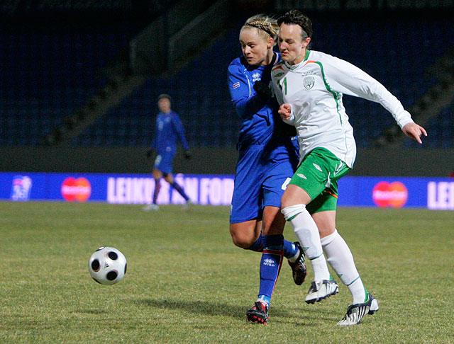 Ísland byrjaði leikinn mun betur, en eftir nokkurra mínútna leik fengu stelpurnar hættulegt færi. Ásta sendi þá boltann fyrir þar sem Hólmfríður skallaði hann á Margréti Láru Viðarsdóttir sem skaut að marki, en Emma Byrne varði hann frábærlega í horn.