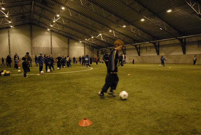 Nýtt knattspyrnuhús var vígt í Grindavík í gær og í tilefni af því komu nokkuð hundruð gestir á vígsluhátíðina. Húsið er 50 x 70 metrar með staðsteyptum veggjum og stálgrindarþaki.
