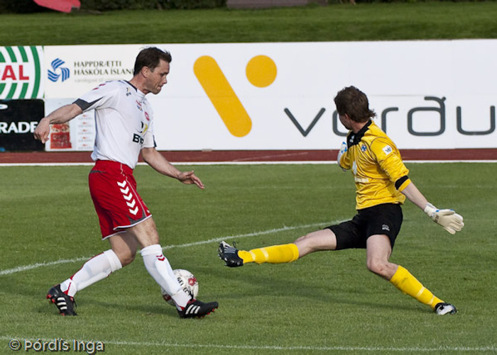Njarðvíkingar voru aldrei líklegir til að skora í fyrri hálfleiknum og telur blaðamaður að Ögmundur Ólafsson hafi komið tvisvar sinnum við boltann í fyrri hálfleik. Óvenju rólegur dagur þar á ferð.