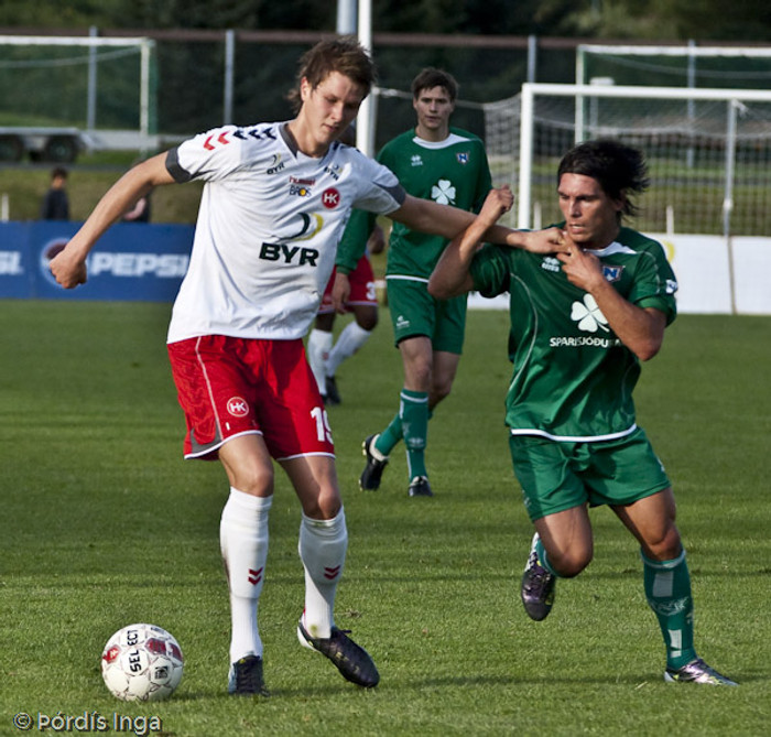 HK menn bættu svo við marki á 34. mínútu þegar þeir fengu aukaspyrnu rétt fyrir utan vítateiginn. Hinn 17 ára gamli Hólmbert Aron Friðjónsson tók hana og skaut föstu skoti undir vegginn og beint í bláhornið framhjá Ingvari í markinu.