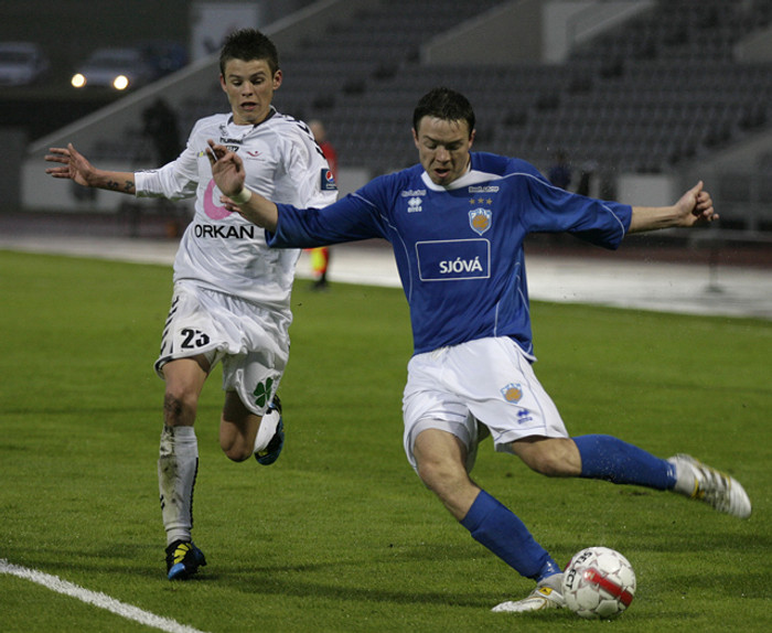 Jón Guðni átti þrumuskot í slá í leiknum og viðurkennir hann að það hefði verið gaman að sjá þann bolta syngja í netinu.