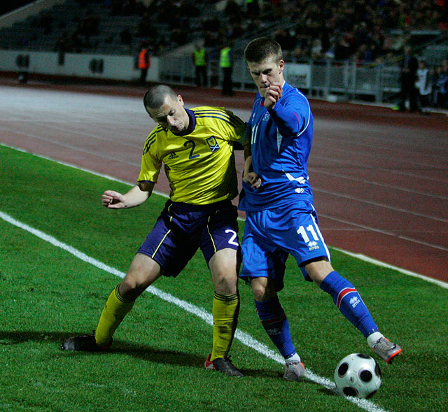 Það var þó lítið sem þeir gátu gert í því þegar varamaðurinn Almarr Ormarsson skoraði annað mark Íslendinga með þvílíku þrumuskoti. Hann hafði verið inni á í um það bil fimm mínútur þegar hann fékk boltann af rúmlega þrjátíu metra færi og þrumaði honum í netið. Gersamlega óverjandi skot og frábær innkoma hjá Almarri, enda á heimavelli. Annars var hann mjög ferskur þær mínútur sem hann var inni á og var nálægt því að leggja upp annað mark fyrir Kolbein.