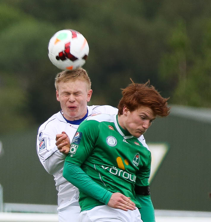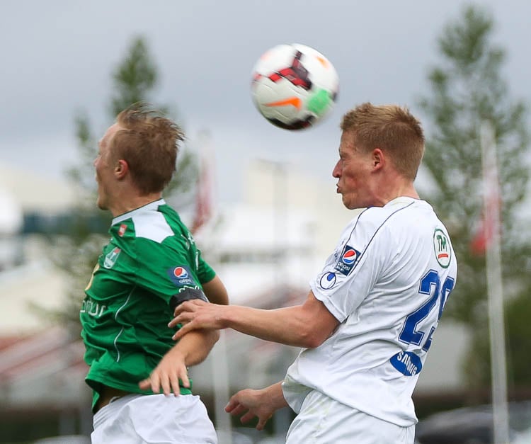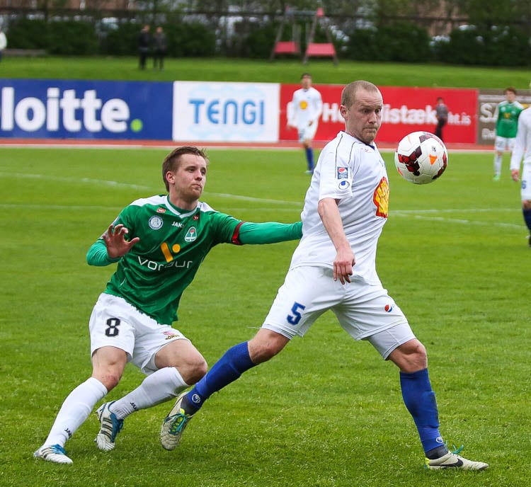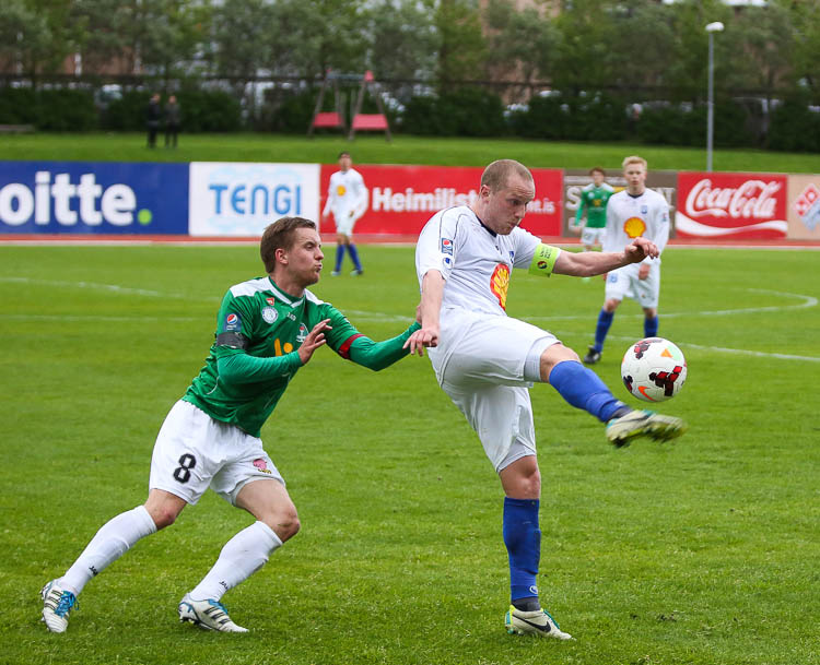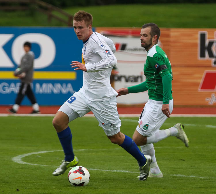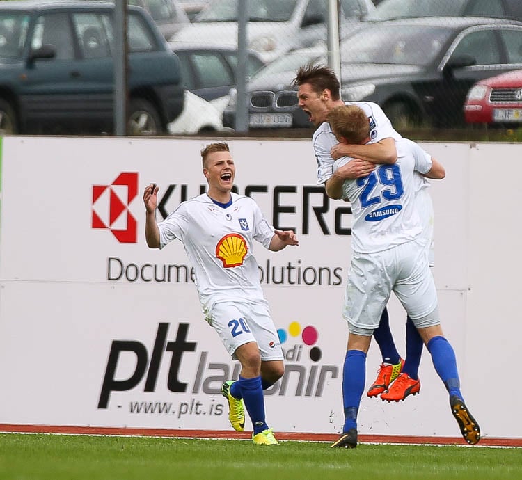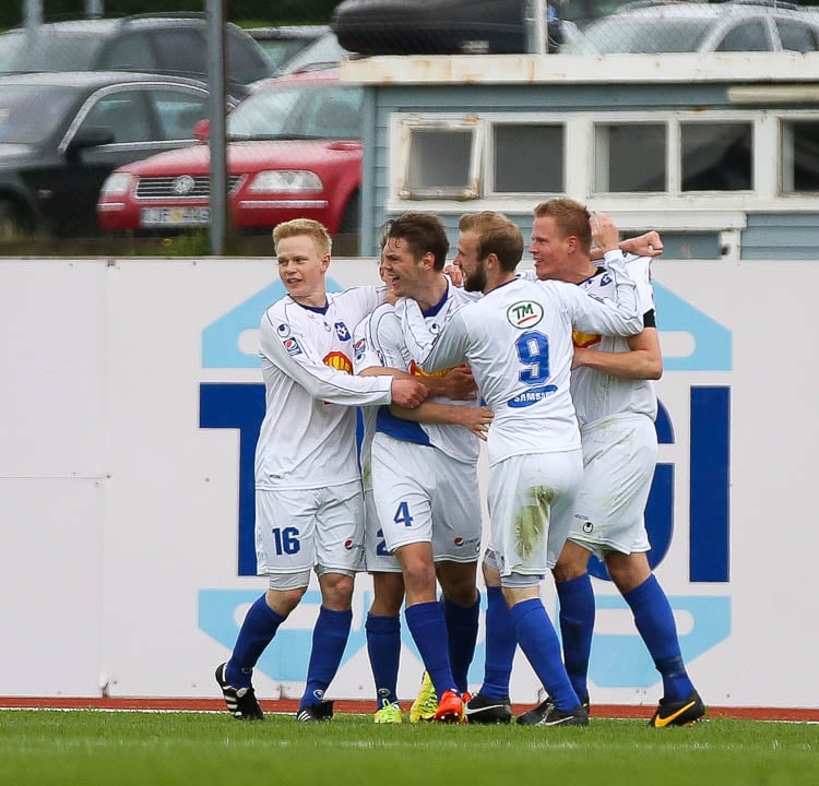 Þeim tókst þó að jafna metin eftir laglega sókn eftir að bæði lið höfðu fengið gott færi hvort. Elvar Páll Sigurðsson skoraði með skoti úr teignum eftir frábæra fyrirgjöf frá Tómasi Óla Garðarssyni. Staðan orðin 1-1.