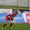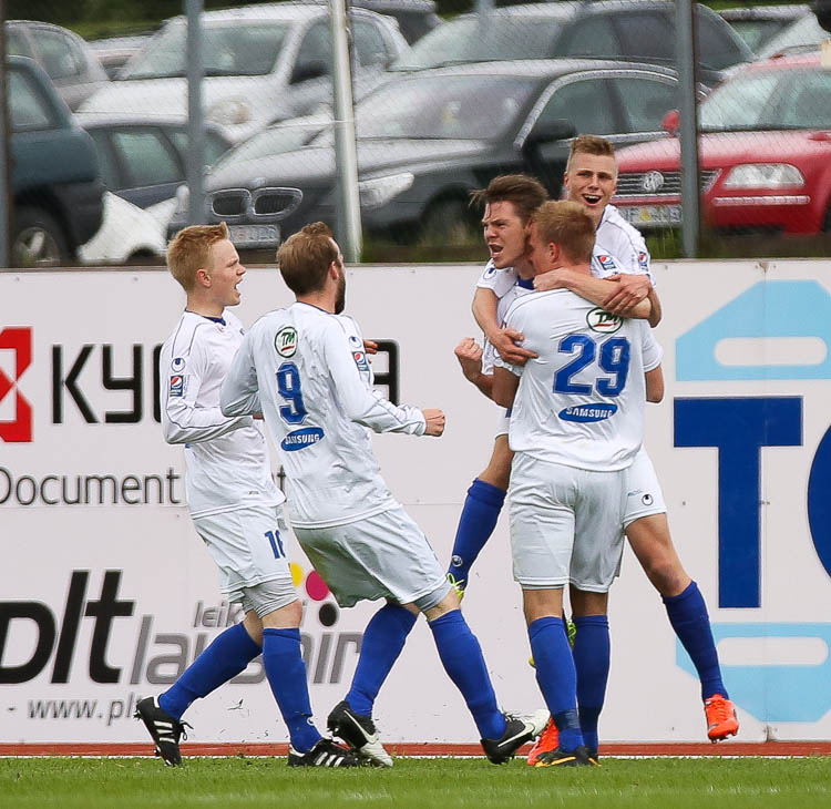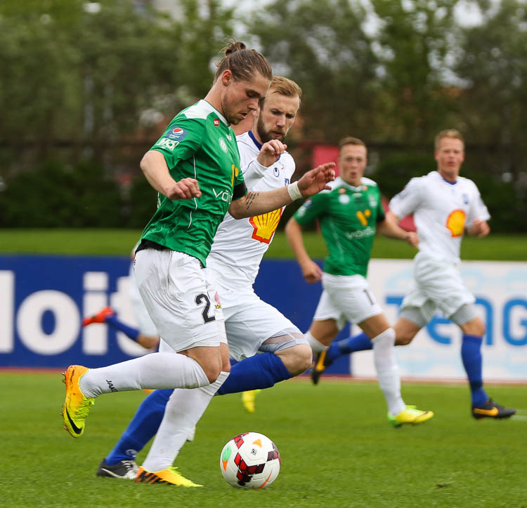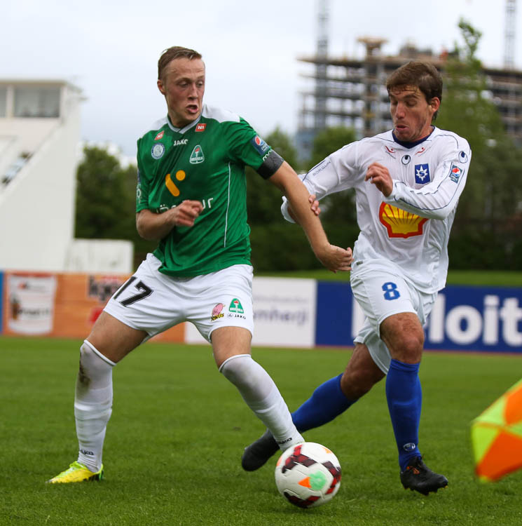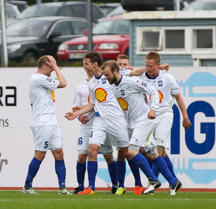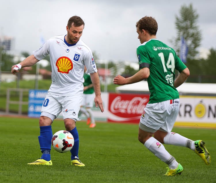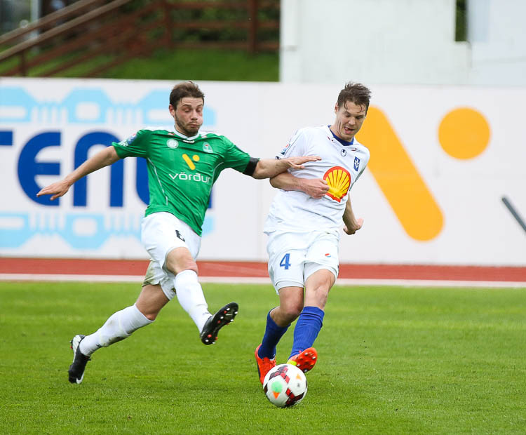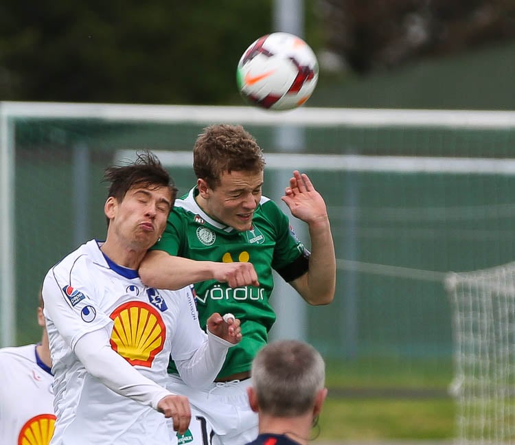 Þeim tókst þó að jafna metin eftir laglega sókn eftir að bæði lið höfðu fengið gott færi hvort. Elvar Páll Sigurðsson skoraði með skoti úr teignum eftir frábæra fyrirgjöf frá Tómasi Óla Garðarssyni. Staðan orðin 1-1.