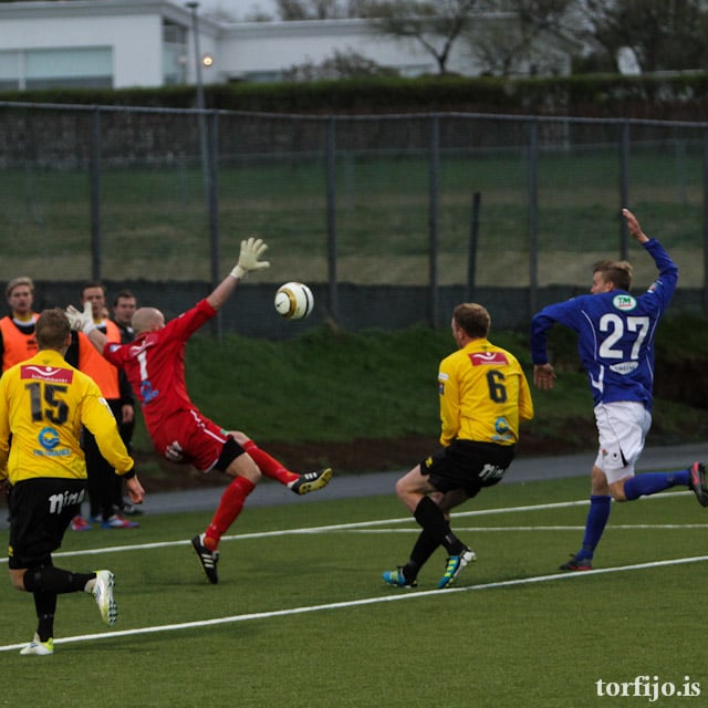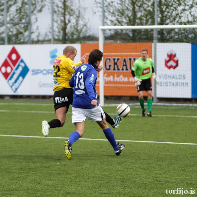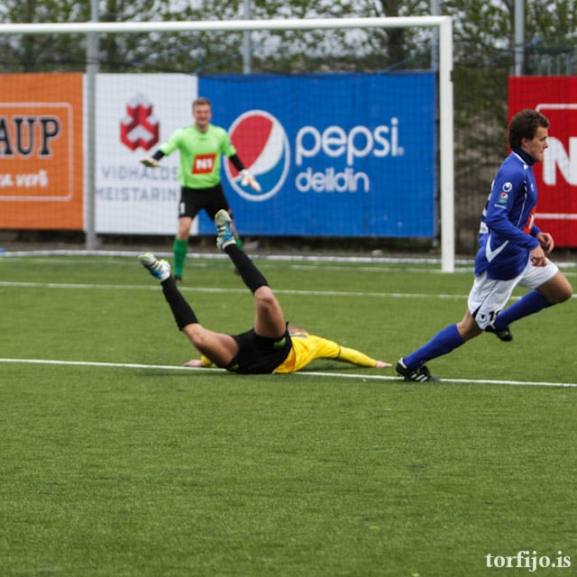 Eina mark seinni hálfleiksins skoraði Garðar eftir að Ármann Smári skallaði boltann til Arnars Má sem gaf á Garðar sem skoraði. Garðar kom gríðarlega sterkur inn sem og Dean Martin og leikurinn breyttist með þeirra innkomu. Úrslitin jafntefli 1-1.