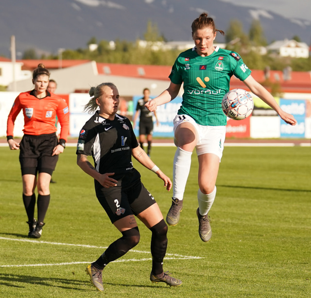 Vörn Þór/KA átti í miklum vandræðum með Öglu í dag. Hún skoraði eitt glæsilegt mark utan af velli og var allt í öllu í þriðja markinu með góða sendingu inn á Berglindi.