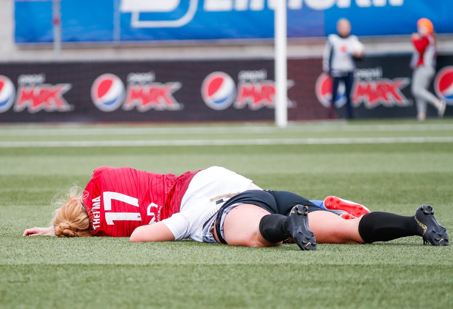 Hugsa að ég verði bara að nefna Thelmu Björk hér sem var virkilega óheppin að þurfa að fara útaf aðeins nokkrum mínútum eftir að hún kom inná eftir slæmt samstuð við Hildi Antons. Gríðarlega svekkjandi fyrir hana og Valsstelpur en við vonum auðvitað að hún sé í lagi.