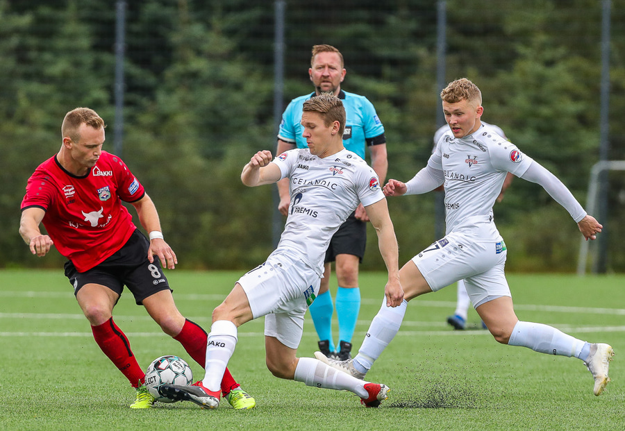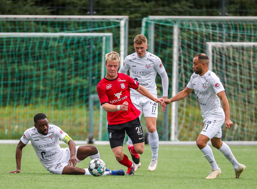 Varslan frá Robert Blakala frá Aroni undir lok leiksins. Var stærsta atvikið í leiknum þegar Aron Elí fær boltann fyrir utan teig og hamrar boltann á markið en Blakala varði gríðarlega vel.