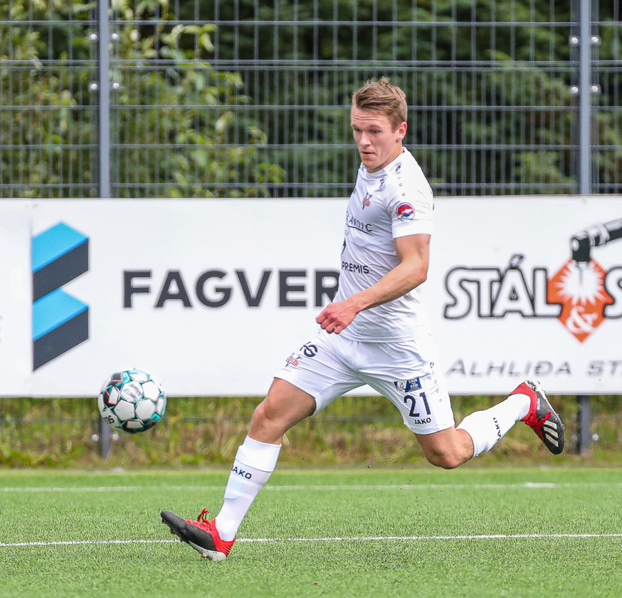 Aron var flottur í vinstri bakverðinum í dag og þegar það gerðist eitthvað hjá Aftureldingu þá var það í gegnum hann vinstra meginn.