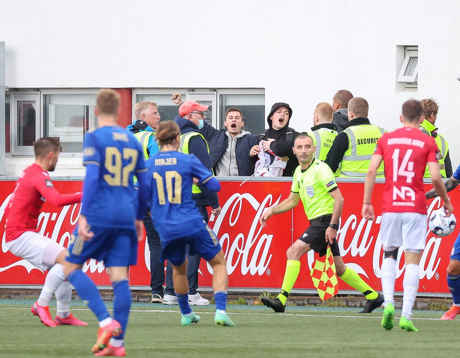Örfáum króatískum stuðningsmönnum Dinamo Zagreb var vikið úr stúkunni eftir að liðið komst yfir í leiknum. Í kjölfarið brutust út læti í stúkunni þar sem öryggisgæslan hafði nóg um að snúast. Leiðinlegt atvik fyrir alla aðila. Í kjölfarið fóru þeir upp á klett við Öskjuhlíðina og horfðu á leikinn frá gömlu Keiluhöllinni. Þess ber þó að hafa í huga að öryggisgæslan fór alfarið eftir settum reglum frá UEFA sem eru strangar á tímum heimsfaraldurs.