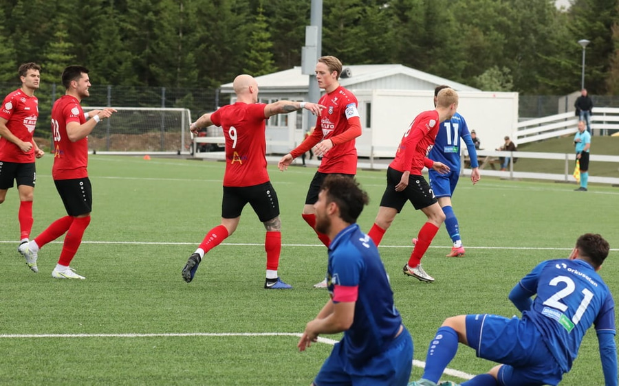 Arnór Gauti skorar mark rétt fyrir hálfleik og kemur heimamönnum þá yfir. Mikivægt að fara inn í hálfleik með forystu því gestirnir opnuðu sig í seinni og þá hófst veislan sóknarlega fyrir Aftureldingu.