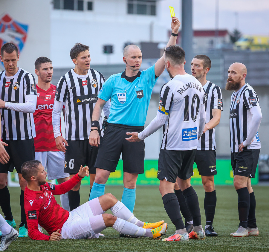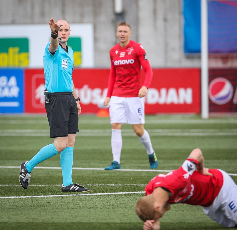 Hann átti þó að spjalda Hauk Pál í fyrri hálfleik og í blálokin var kannski aðeins of mikill flautuleikur í boði. Heilt yfir getur teymið labbað sátt af velli í þrælkrefjandi leik.