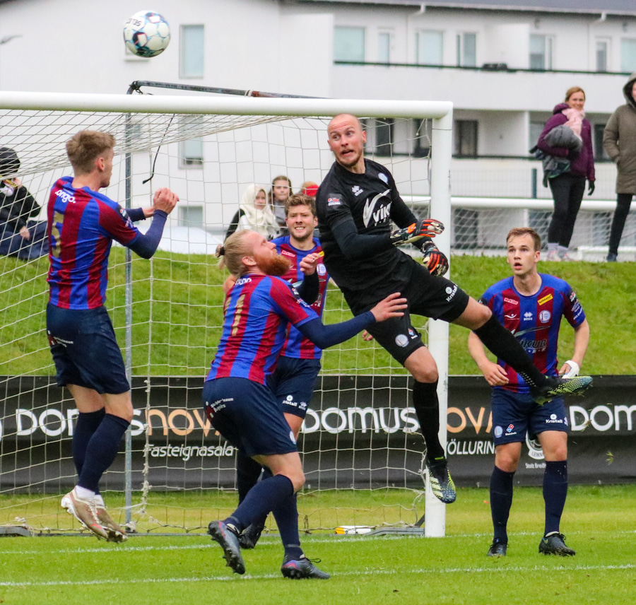 Það er markið sem var dæmt af, Bjarki Aðalsteinsson skoraði með skalla eftir hornspyrnu en rangstaða var dæmd á Sólon, ég er ekki sannfærður með þá niðurstöðu.