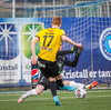 Jöfnunarmarkið hjá Kaj Leo undir lokin - Fékk langan bolta frá vinstri alla leið yfir til hægri á fjær og kláraði vel framhjá Haraldi Björnssyni í marki Stjörnunnar