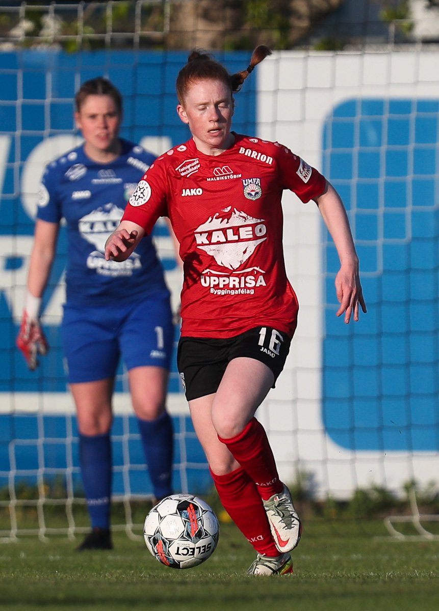 Sigurmark Marcella Marie Barberic. Marcella skoraði af stuttu færi á lokamínútum leiksins. Hún tók laglega á móti sendingu frá Ólínu Valdimarsdóttur og skoraði markið mikilvæga sem tryggði KR fyrstu stig sumarsins.