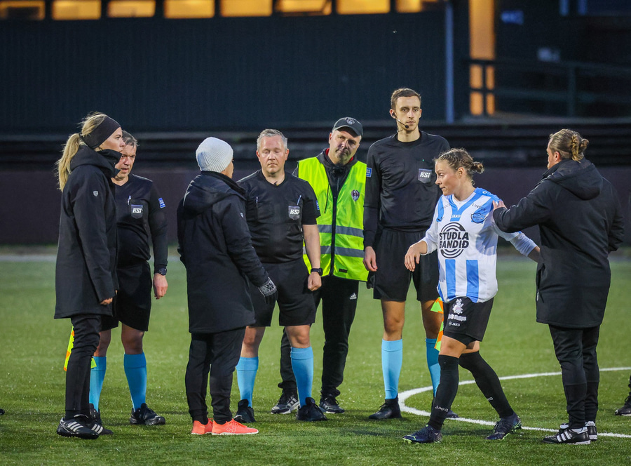 Báðir þjálfarar liðanna höfðu orð á því hvað leikmenn voru illa verndaðir á vellinum vegna fárra spjalda og hafa þeir eitthvað til síns máls, aðeins 1 spjald á loft í dag og hefðu þau svo sannarlega getað verið fleiri.