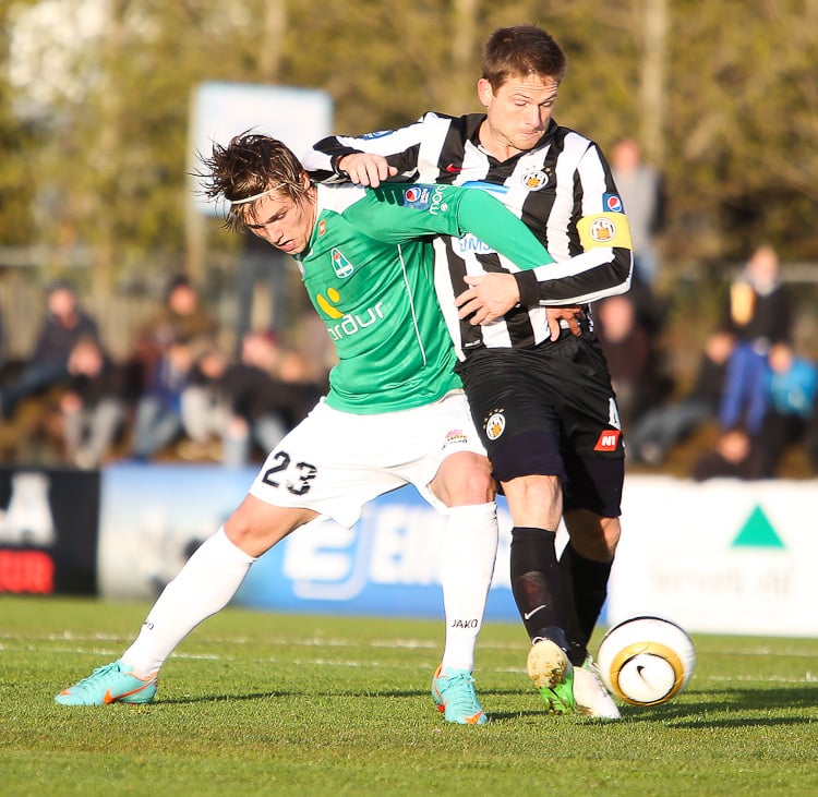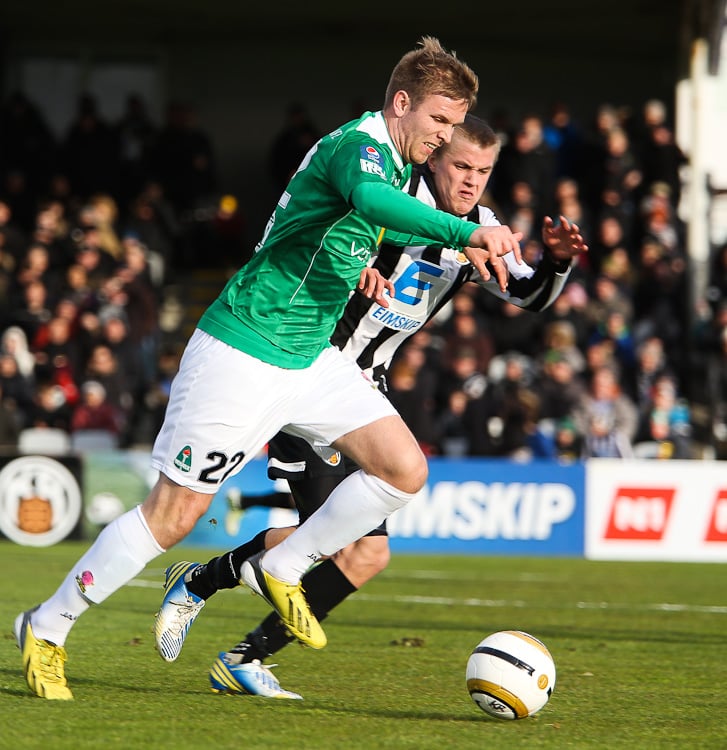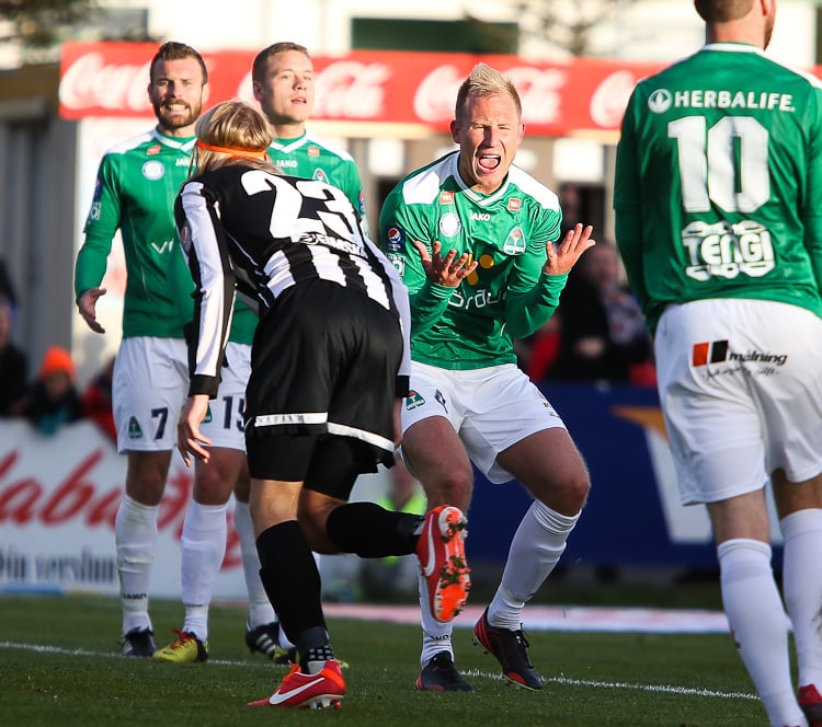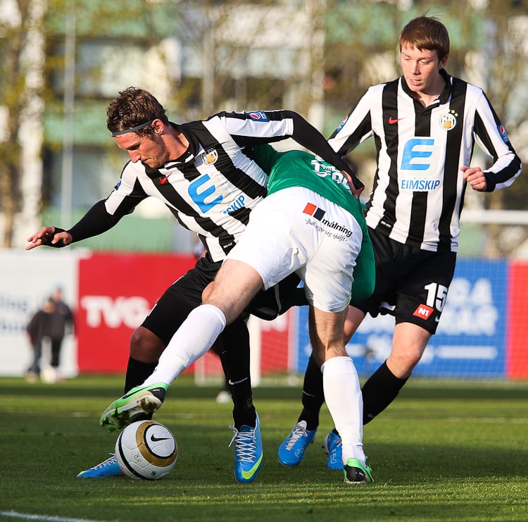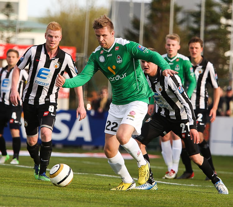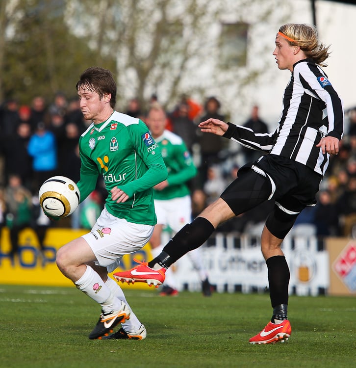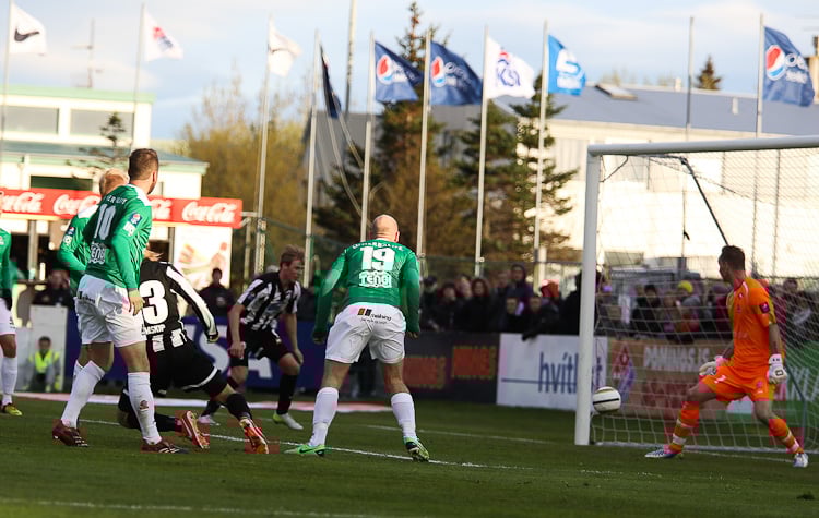 Nichlas Rohde hefði getað rænt öllum stigunum þremur fyrir Blika þegar hann lék á Grétar Sigfinn Sigurðarson og Bjarna Guðjónsson, komst einn gegn Hannesi Þór Halldórssyni en setti boltann naumlega framhjá.