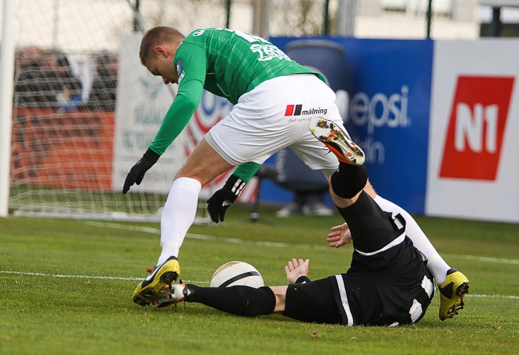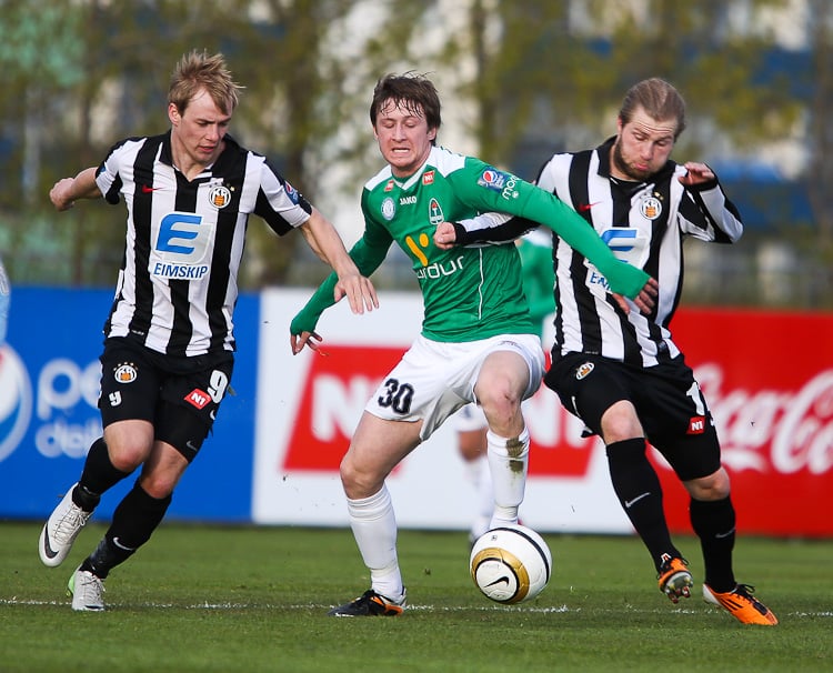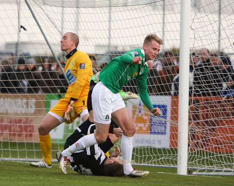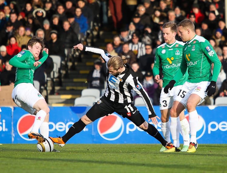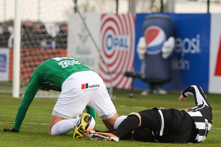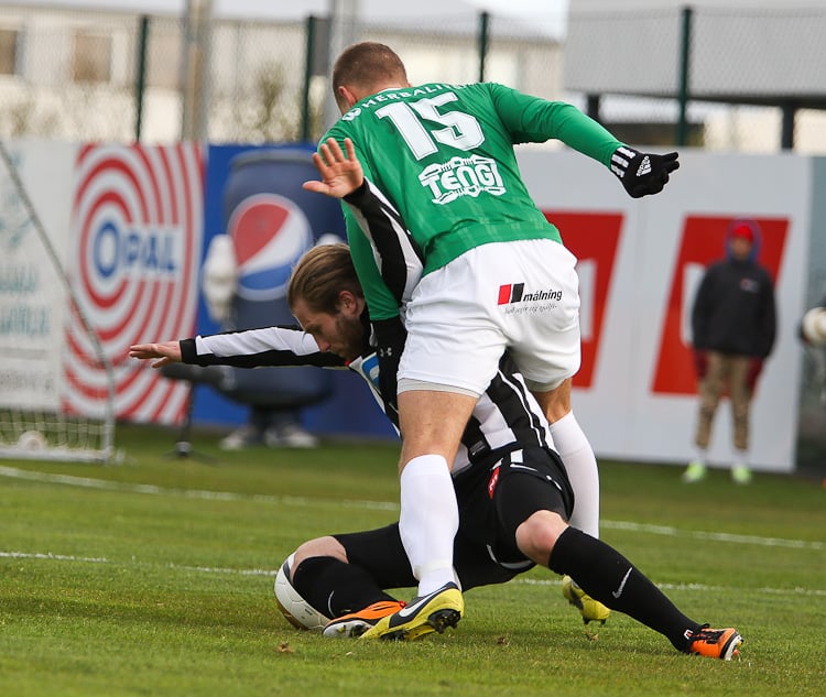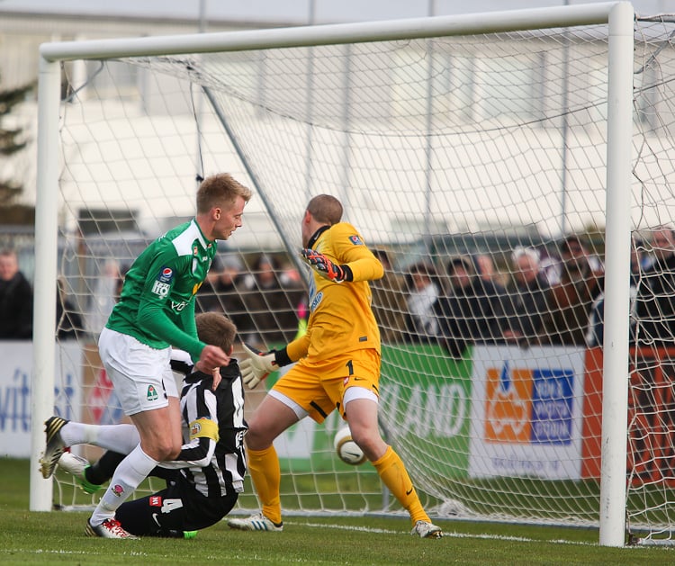 Nichlas Rohde hefði getað rænt öllum stigunum þremur fyrir Blika þegar hann lék á Grétar Sigfinn Sigurðarson og Bjarna Guðjónsson, komst einn gegn Hannesi Þór Halldórssyni en setti boltann naumlega framhjá.