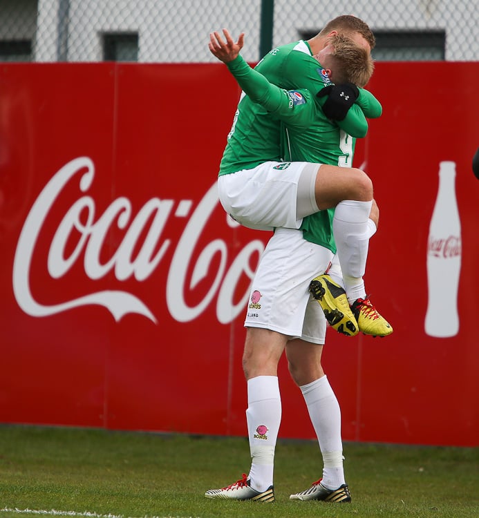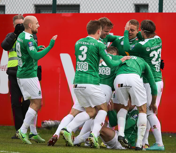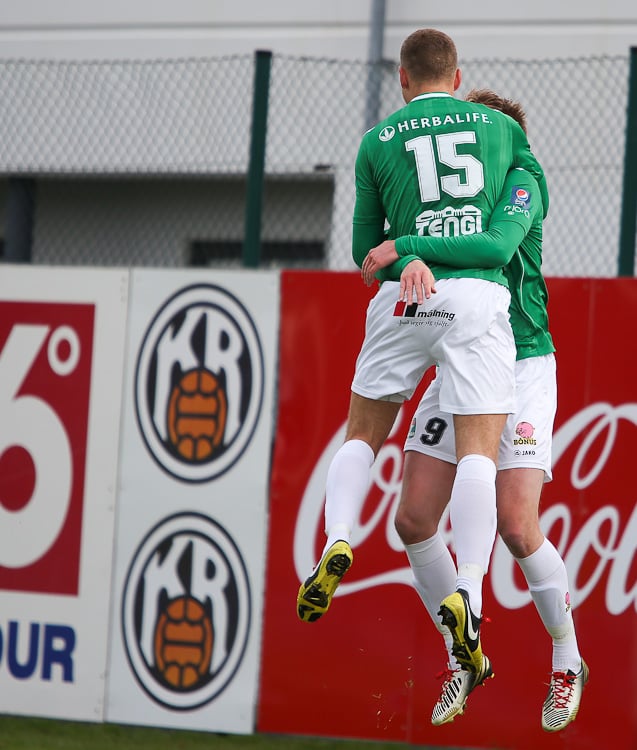 Leikurinn var tíðindalítill lengi framan af en skömmu fyrir hálfleik náði Elfar Árni Aðalsteinsson að skora. KR-ingar voru allt annað og vildu fá dæmt brot á Sverri Inga Ingason í aðdragandanum. Höfðu ansi mikið til síns máls þar heimamenn.
