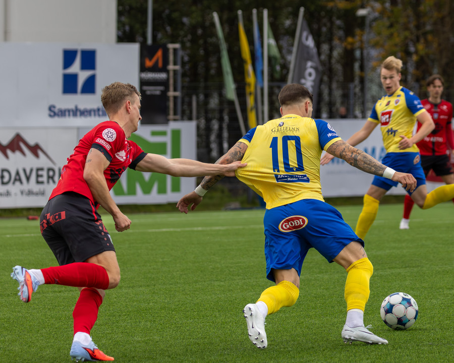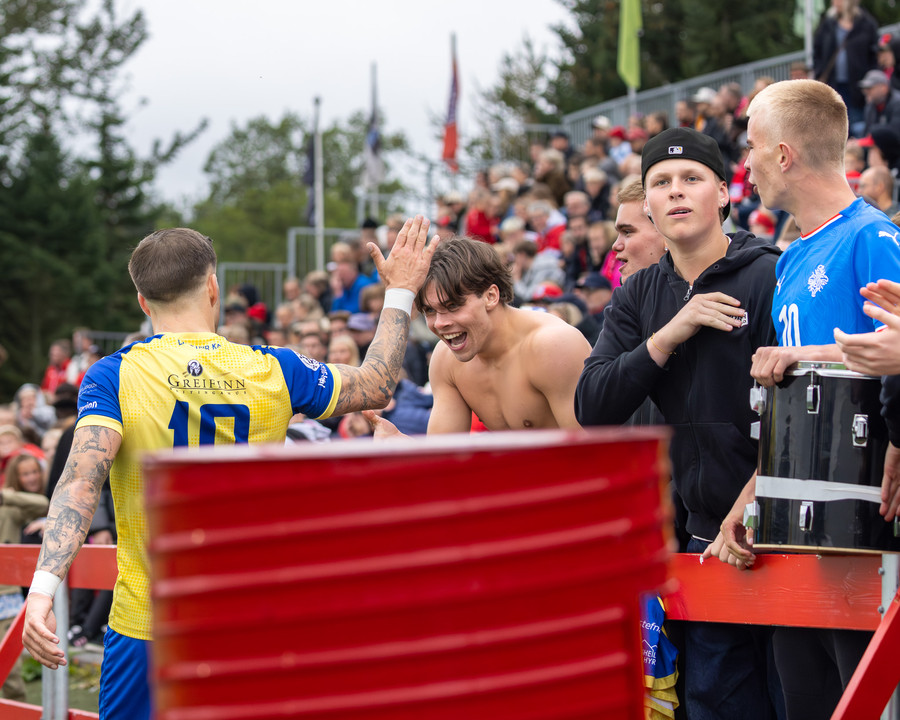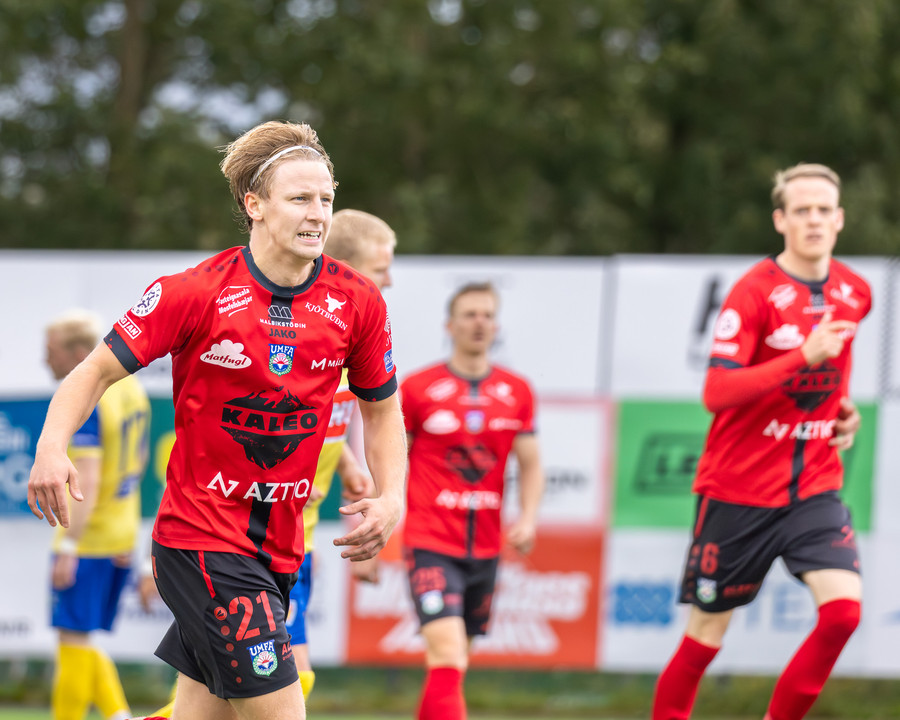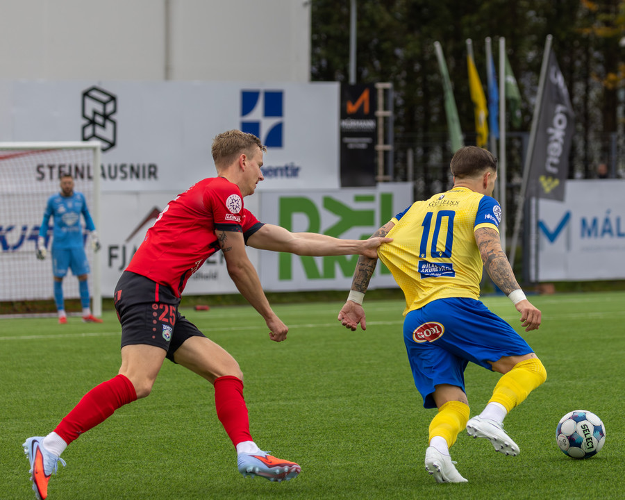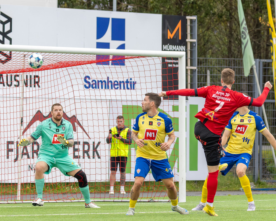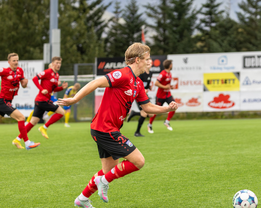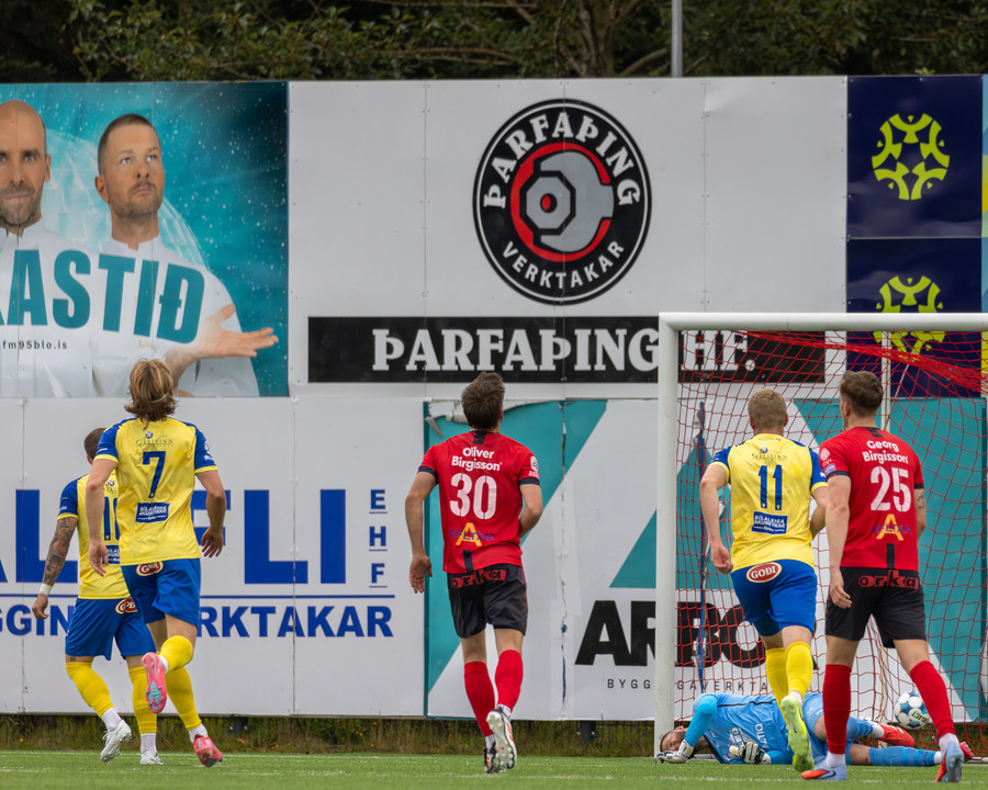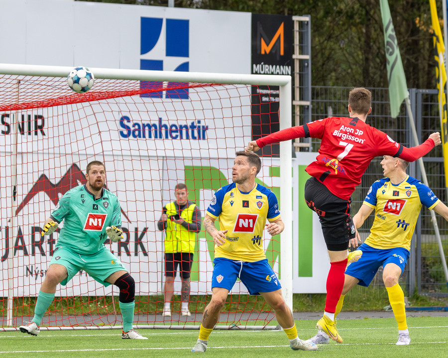 KA kemst í 3-2 á 84. mínútu og flestir norðanmenn héldu líkast til að þeir væru að vinna leikinn með því marki. Þá taka hins vegar Afturelding miðju. Koma boltanum á Arnór Gauta sem tekur svakalegan sprett upp hægri kantinn, svo kemur frábær fyrirgjöf á Aron Jó sem stangar boltann í netið.