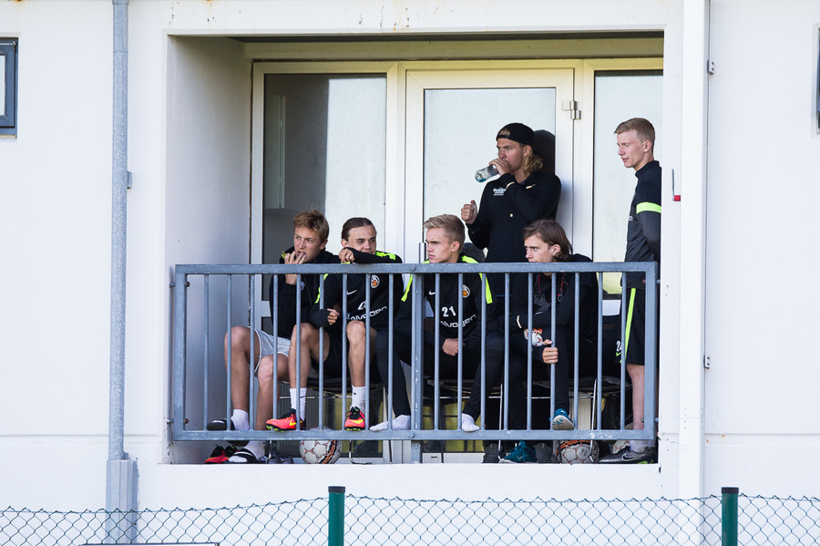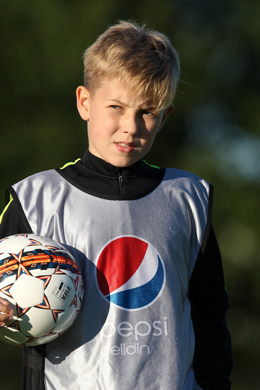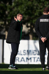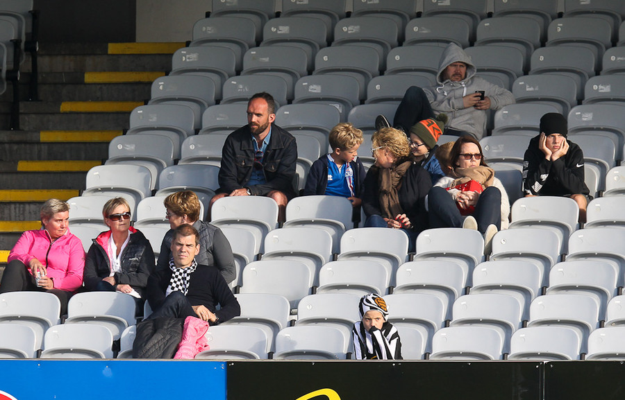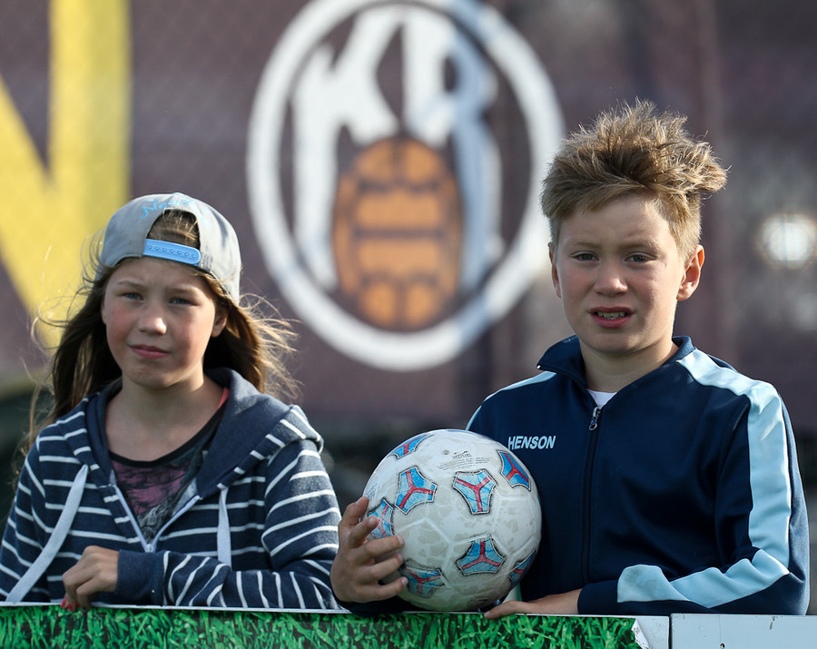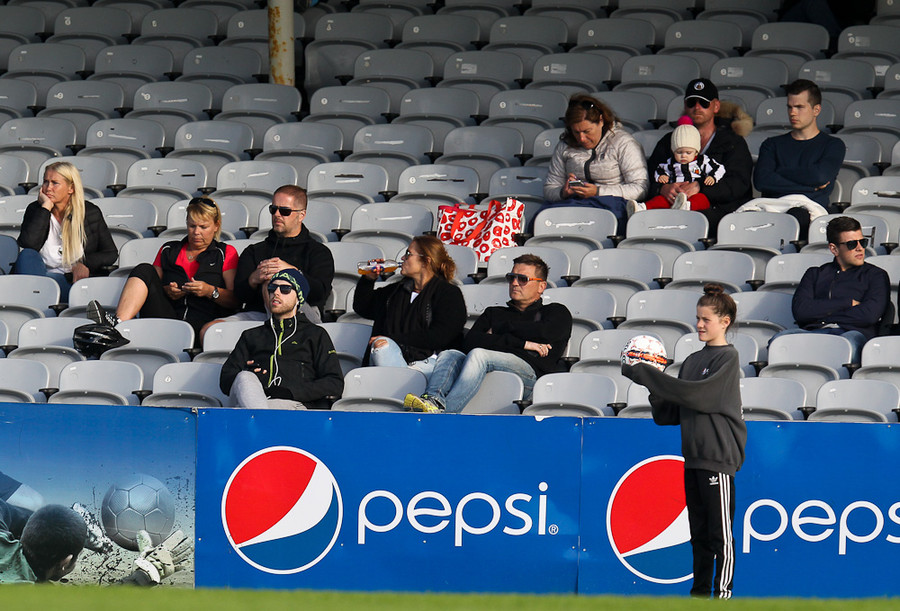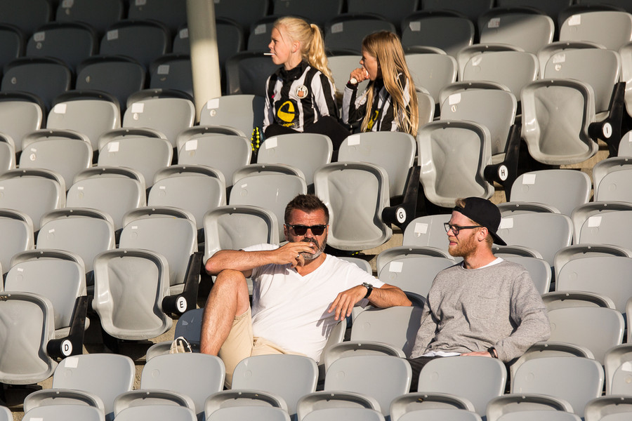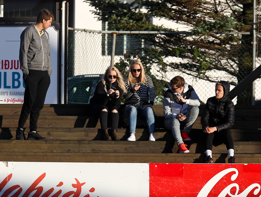 Frábært veður til knattspyrnuiðkunnar en áhorfendur eru afar fáir. Færri en 20.