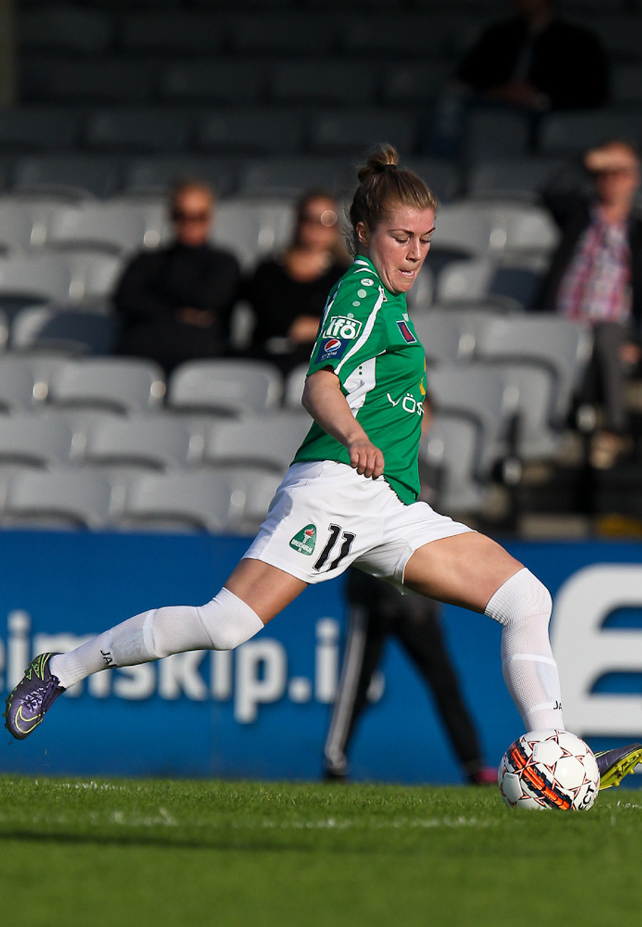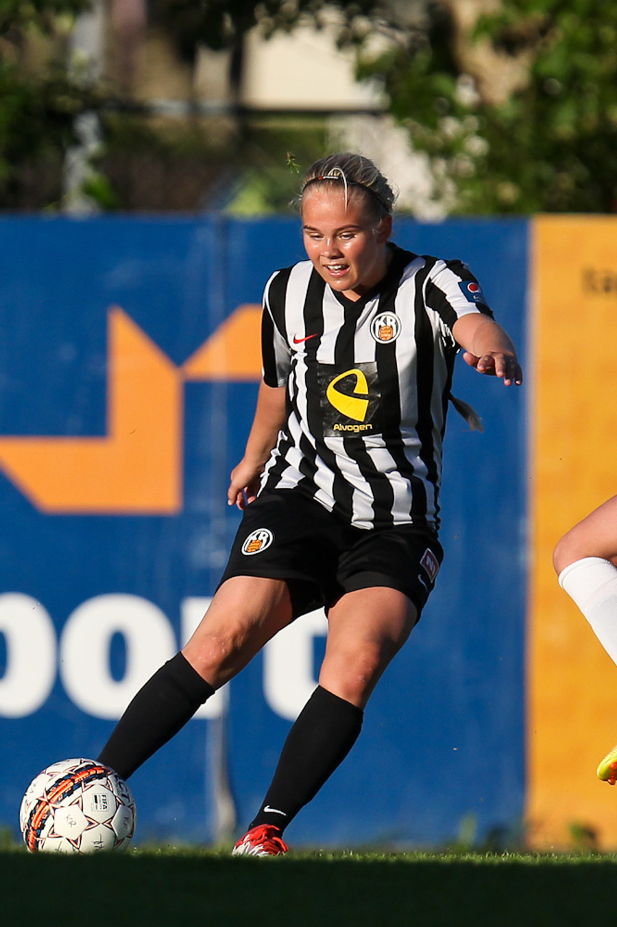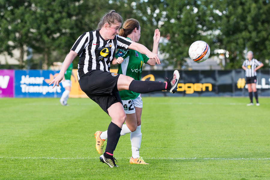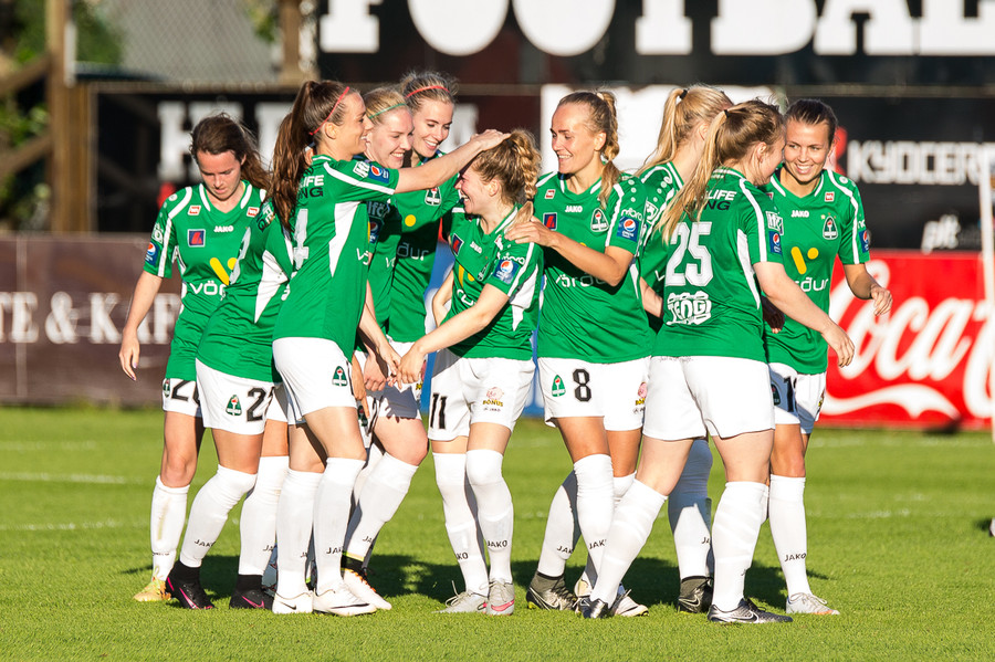 Fyrsta hornspyrna leiksins lítur dagsins ljós. Hallbera með bolta sem svífur yfir teiginn á fjær, en boltinn endar svo í innkasti.
