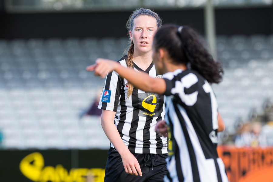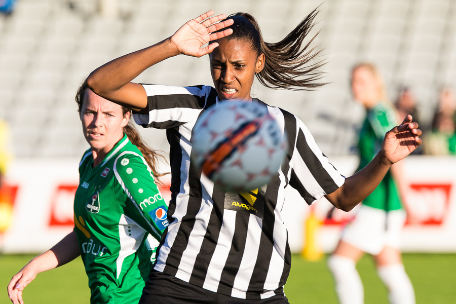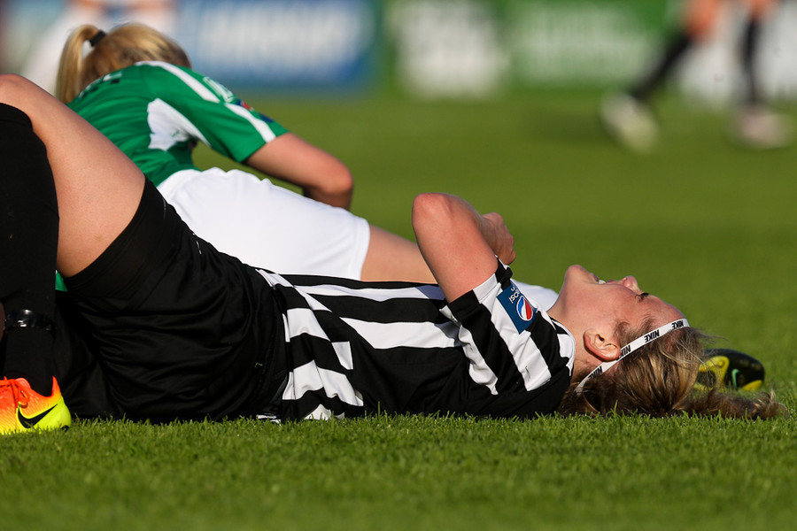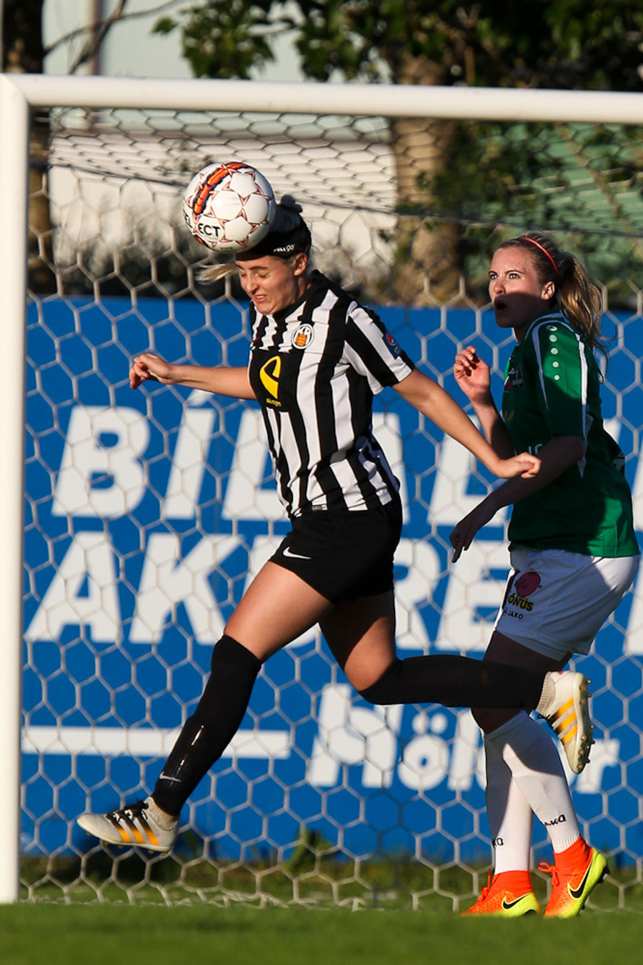 DAUUUUUUUUUUUÐAFÆRI!!!!! OLIVIA CHANCE ER ALEIN Í TEIGNUM, fær frábæra fyrirgjöf og er með alveg frían skalla en skallar boltann beint á Ingibjörgu í markinu! Illa farið með gott færi.