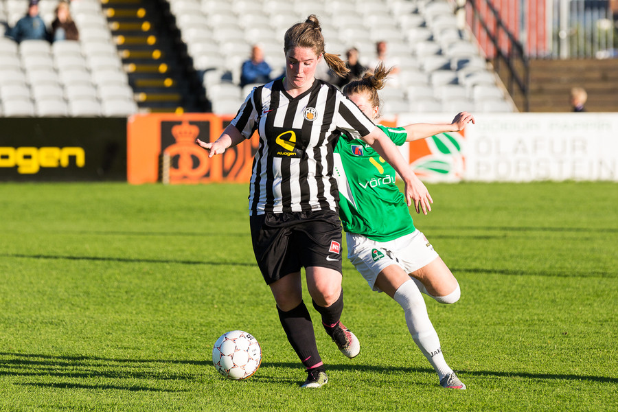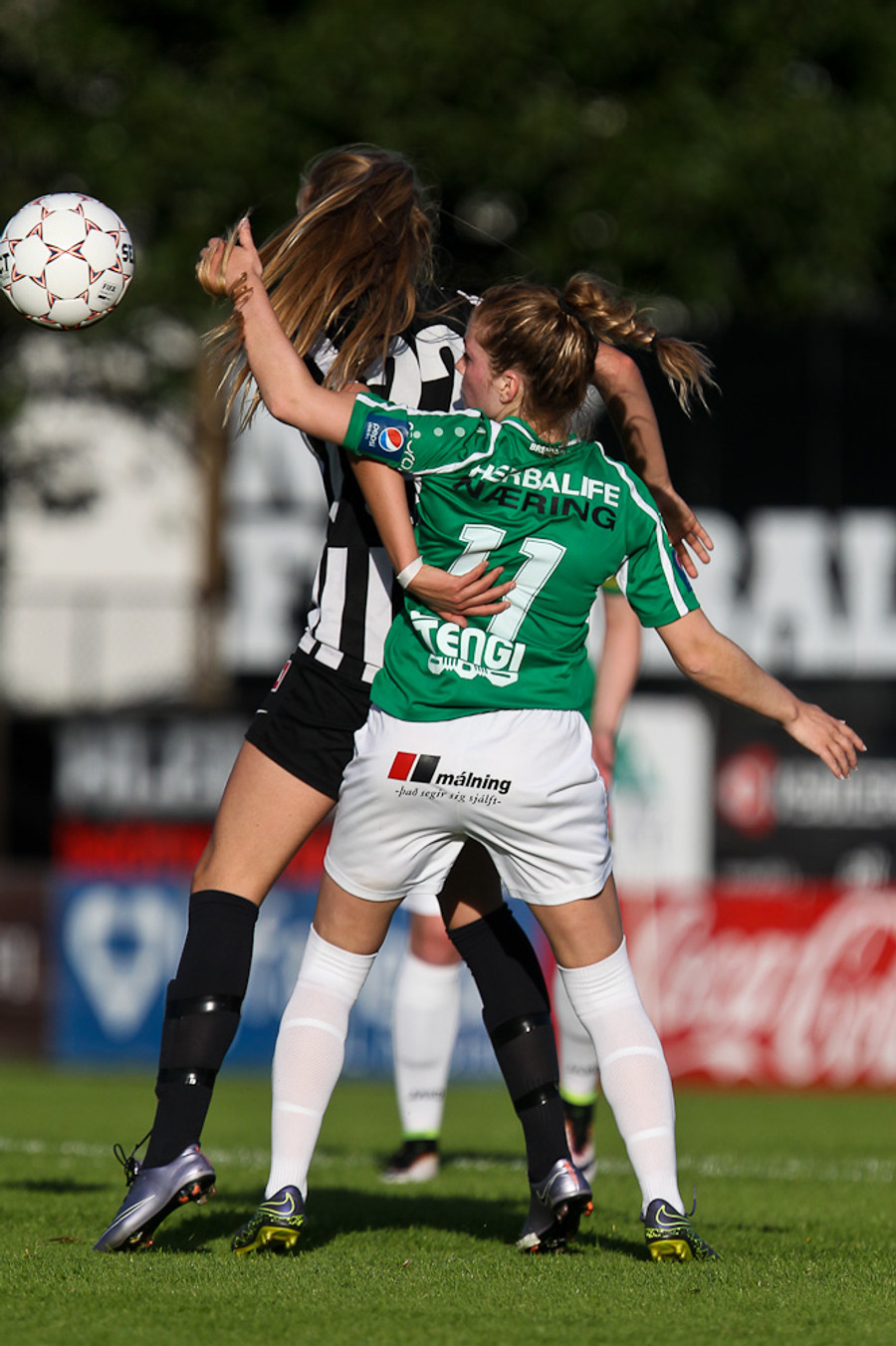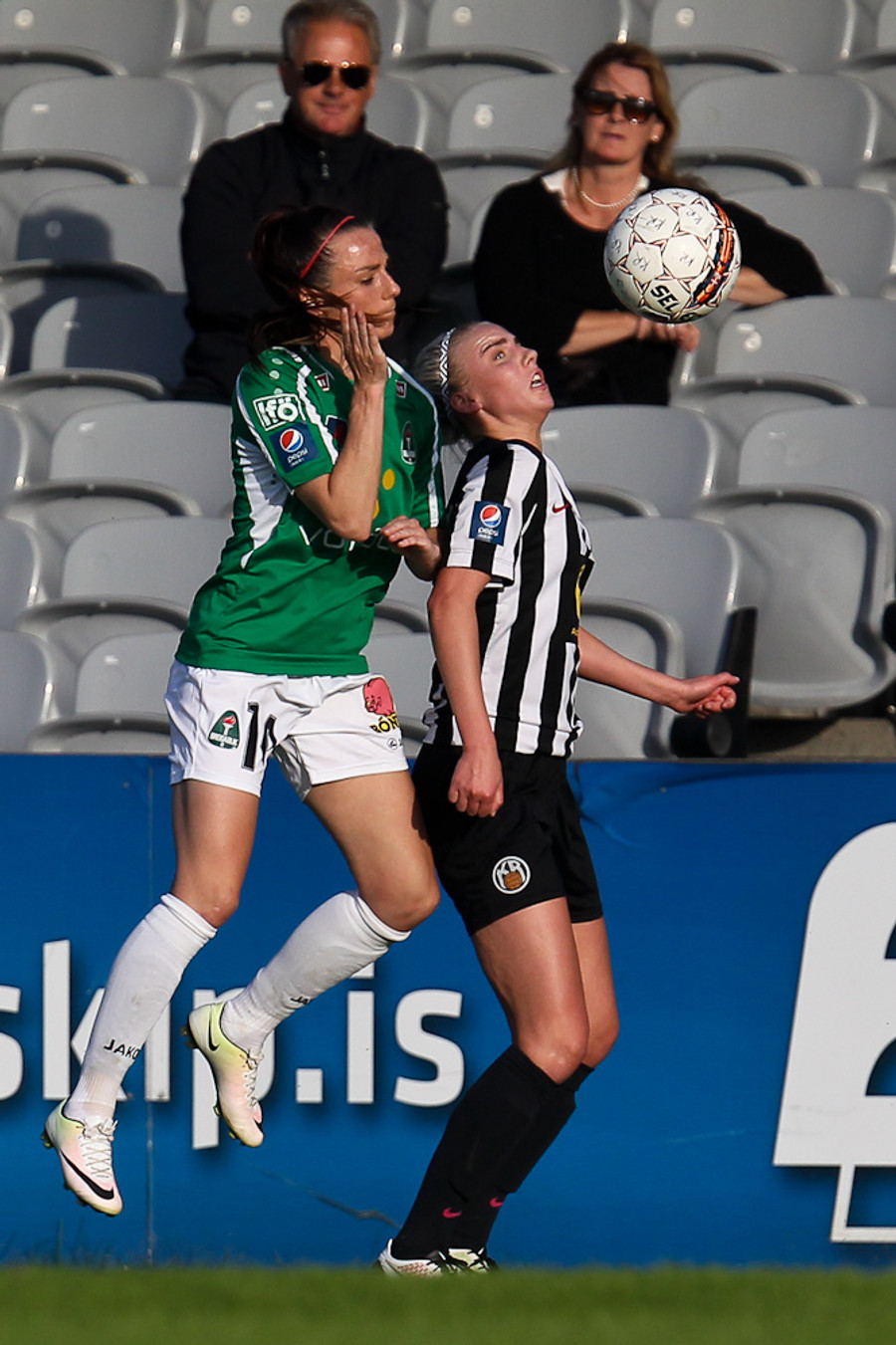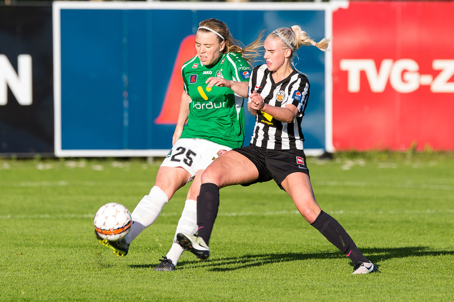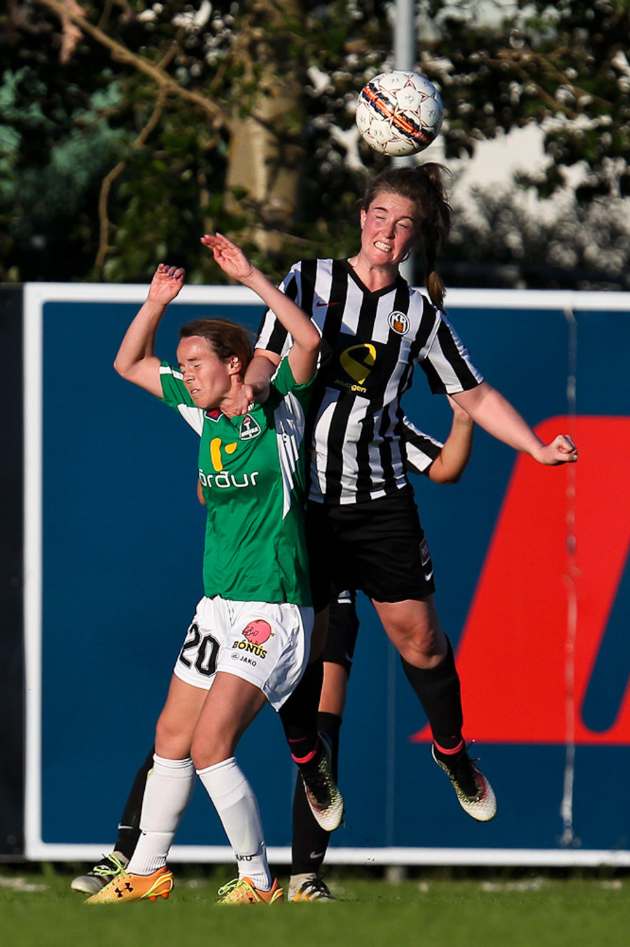 Berglind Björg í ágætis færi eftir undirbúning frá Ástu Eir en Ingibjörg lokar vel á hana.