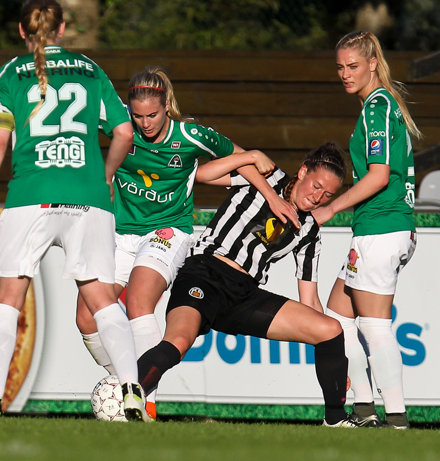 HAHA HVAÐ VAR ÞETTA??? Fanndís felld inni í teig, dómarinn stingur flautunni í kjaftinn og ætlar að dæma víti, hættir svo við, ekkert dæmt! Mjög spes!