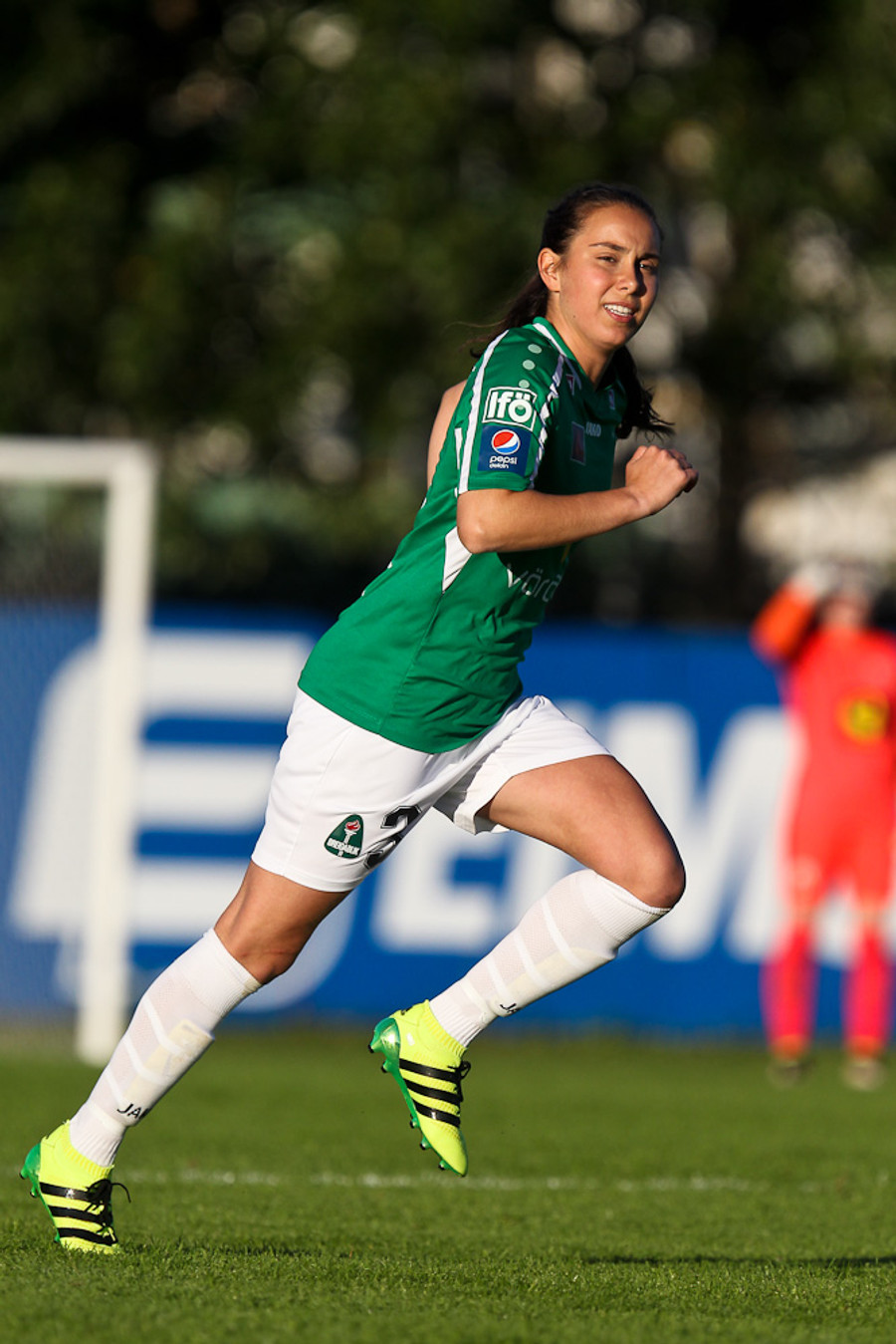 Svava Rós Guðmundsdóttir er komin ein í gegn, fer framhjá markmanni og skorar... en búið að flagga hana rangstæða.
