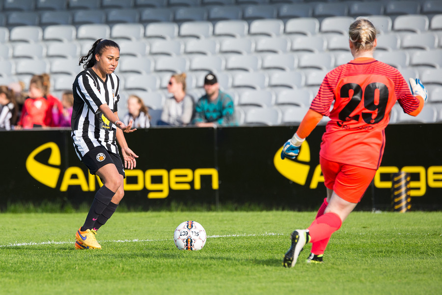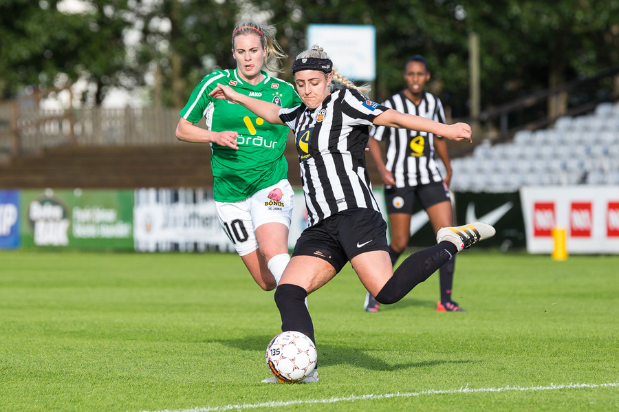 MAAAAAAAAAAAAARK!!!! BERGLIND BJÖRG SKORAR!!! Hún fær frábæra sendingu, fer framhjá markmanninum og setur boltann í netið! Virkilega vel gert!