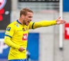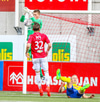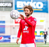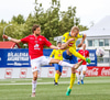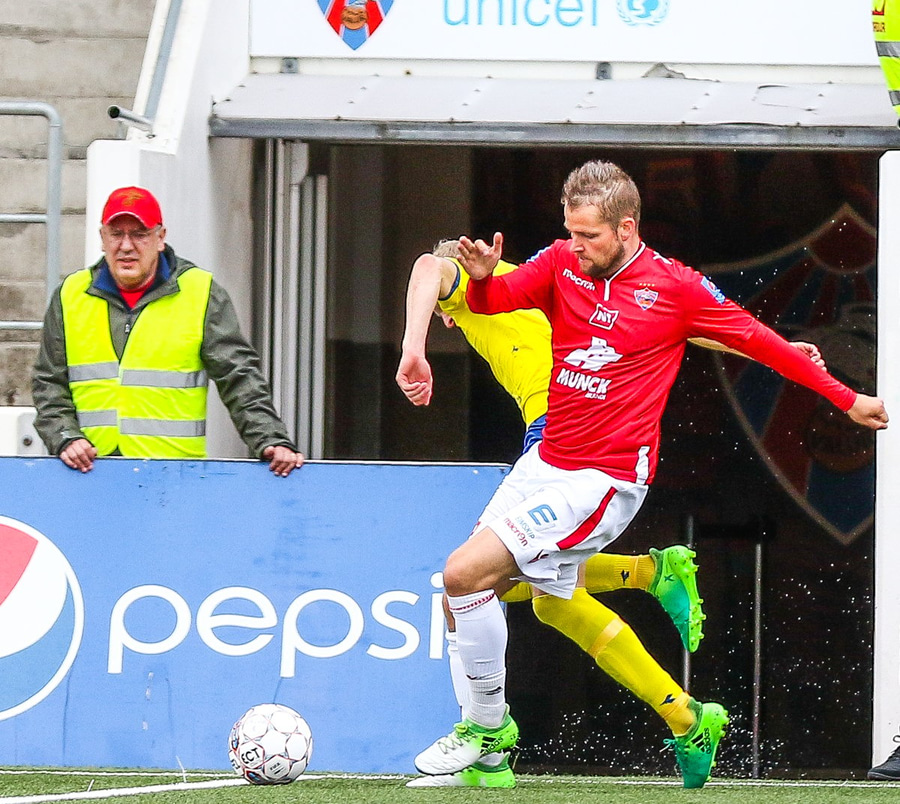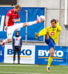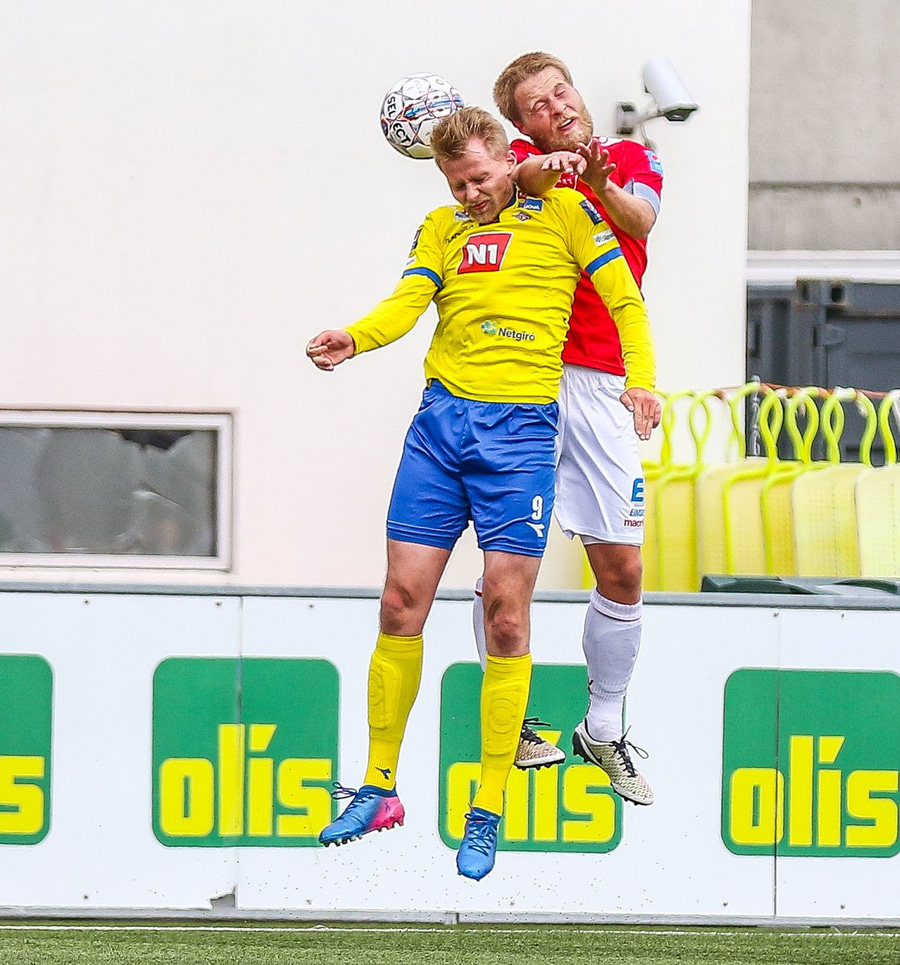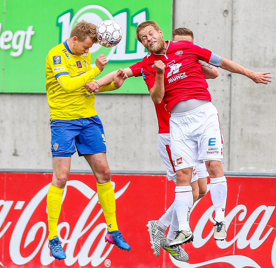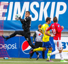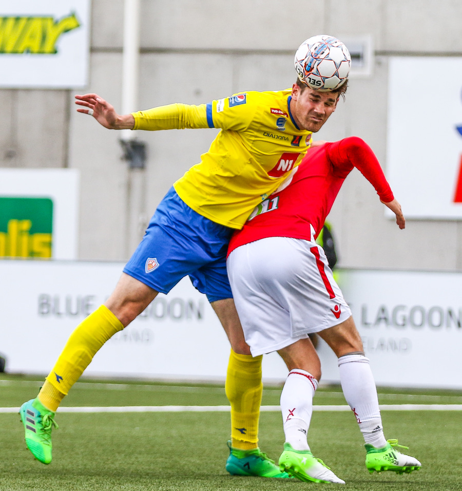 Emil Lyng með skalla beint á Anton í markinu. Lyng var dauðafrír í teignum. Þarna á hann að gera miklu betur.