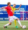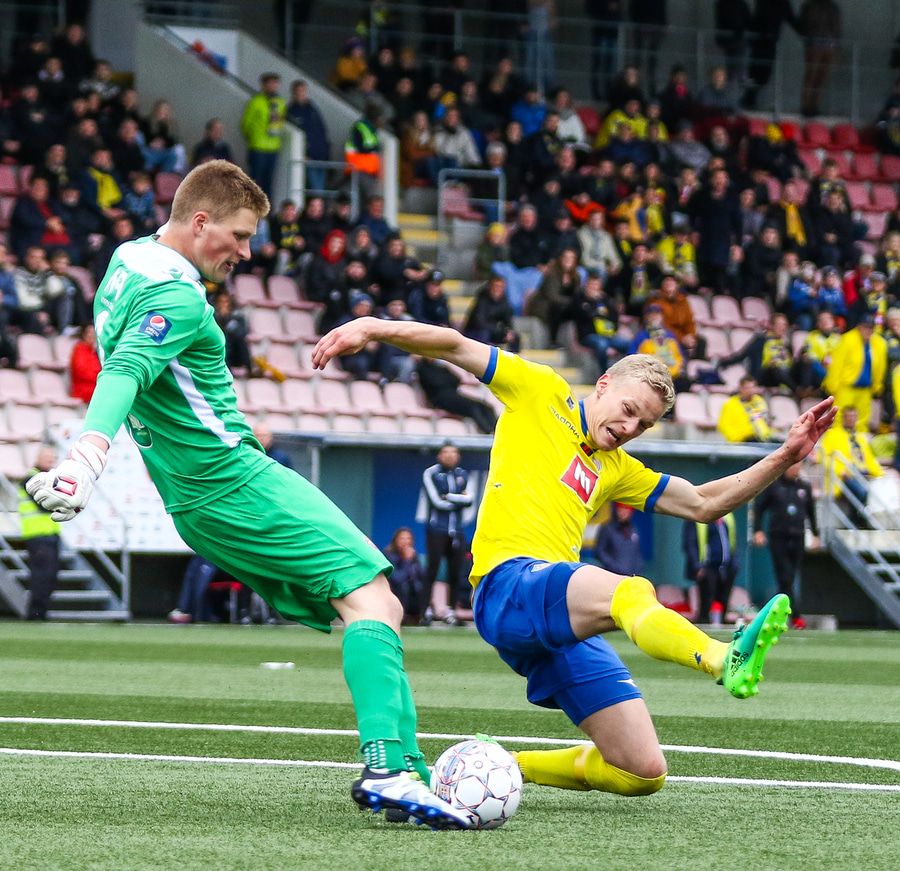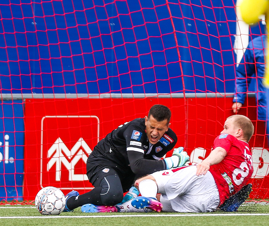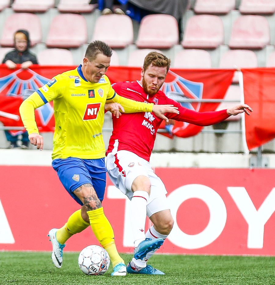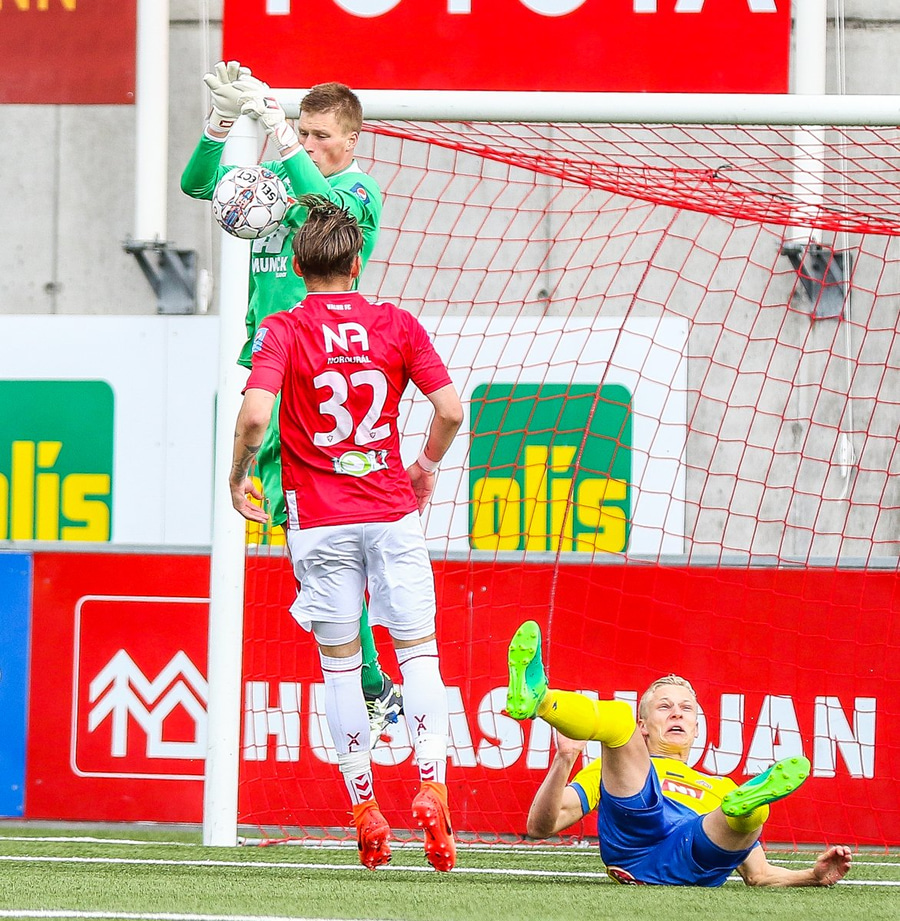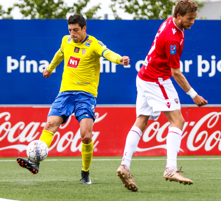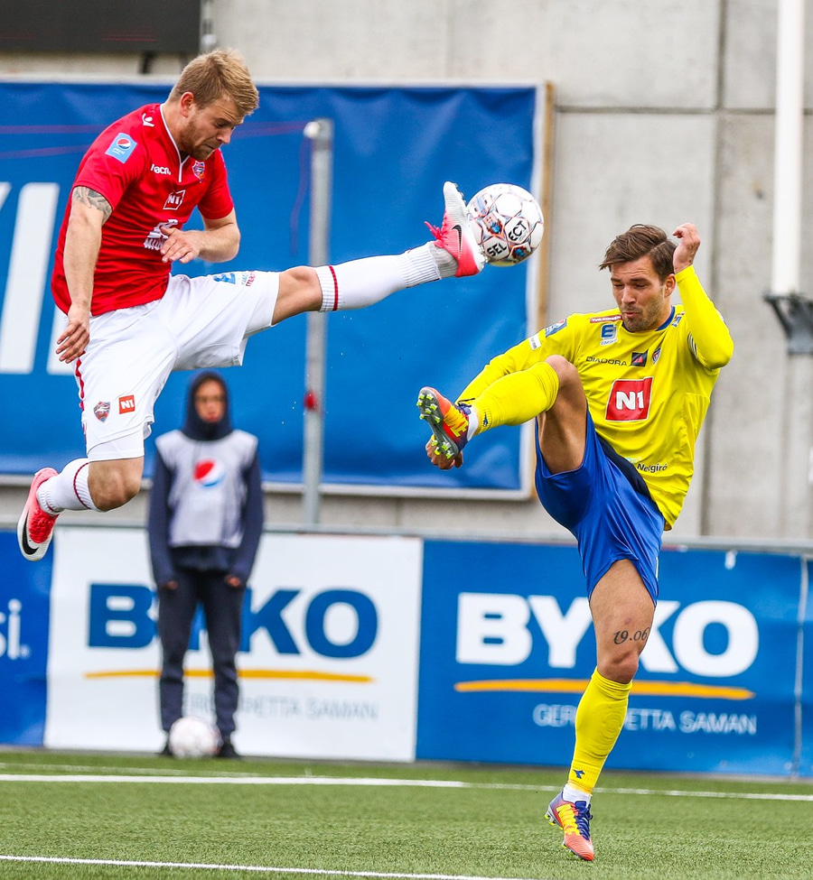 Kristinn Ingi kom sér í þröngt færi eftir að Arnar Sveinn hafði átt góða sendingu inn fyrir. Rajko var þó kominn út í hlaupið og varðist þessu vel.