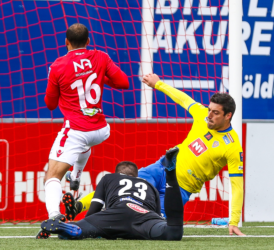 Valsmenn að sækja. Sýndist Kristinn Ingi eiga þarna slakan skalla upp í loftið og það var ekkert vesen fyrir Rajko.