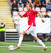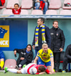 BJARNI ER FOKINN AF VELLI!! Annað gula spjaldið á hann. Hann fór aftan í Emil Lyng rétt fyrir utan teig og þetta er hárréttur dómur. Valsmenn manni færri síðasta hálftímann.