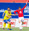 Bogild með sendingu inn fyrir á Sigurð Egil en hann reynir að vippa honum yfir Rajko. Slök ákvörðun þarna!